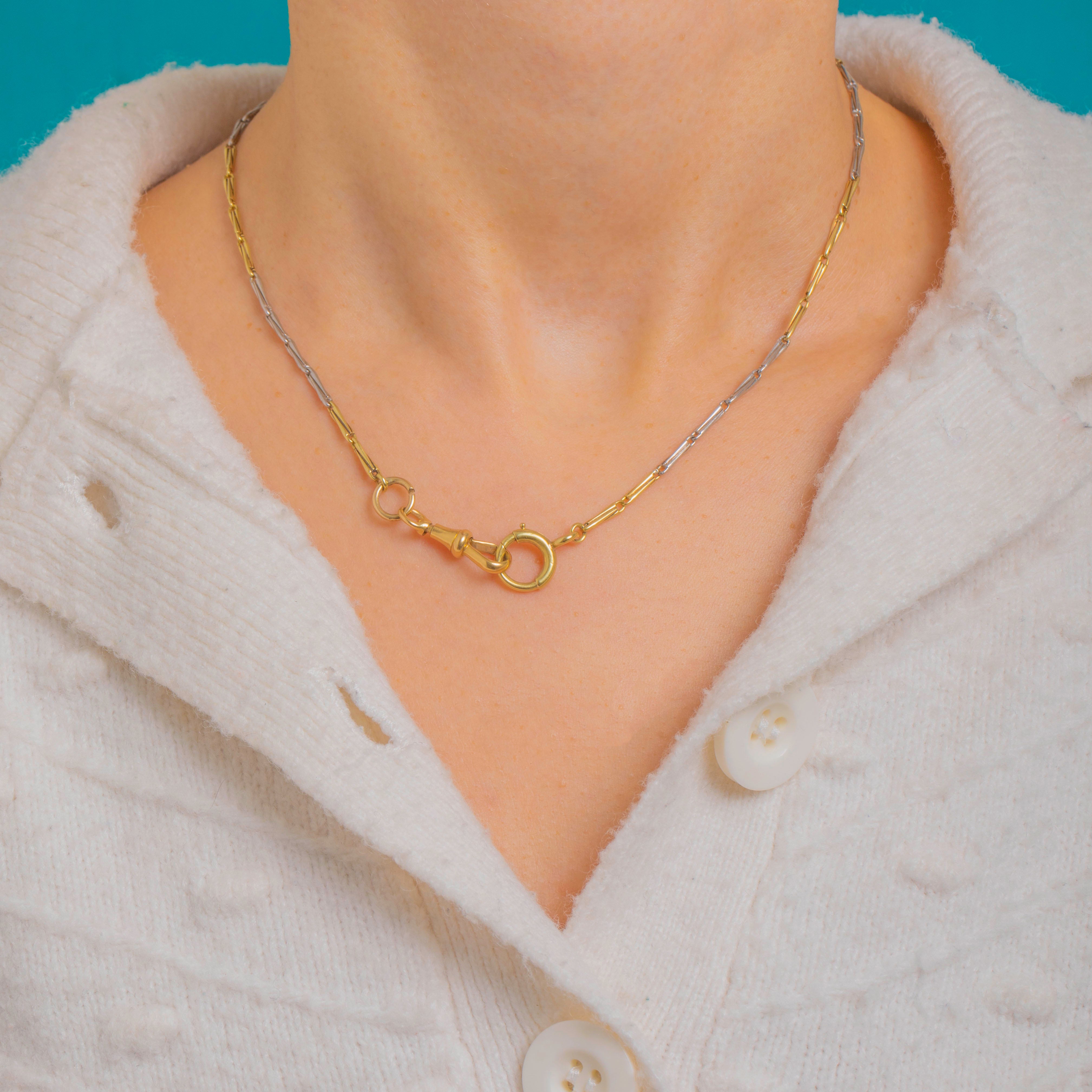 At a chic 15.5", it sits perfectly at the collarbone, worn solo, layered, or as a refined anchor for a pendant or charm. The chain is finished with a classic bolt-ring and dog-clip clasp, offering versatile styling and a sophisticated, tailored finish.