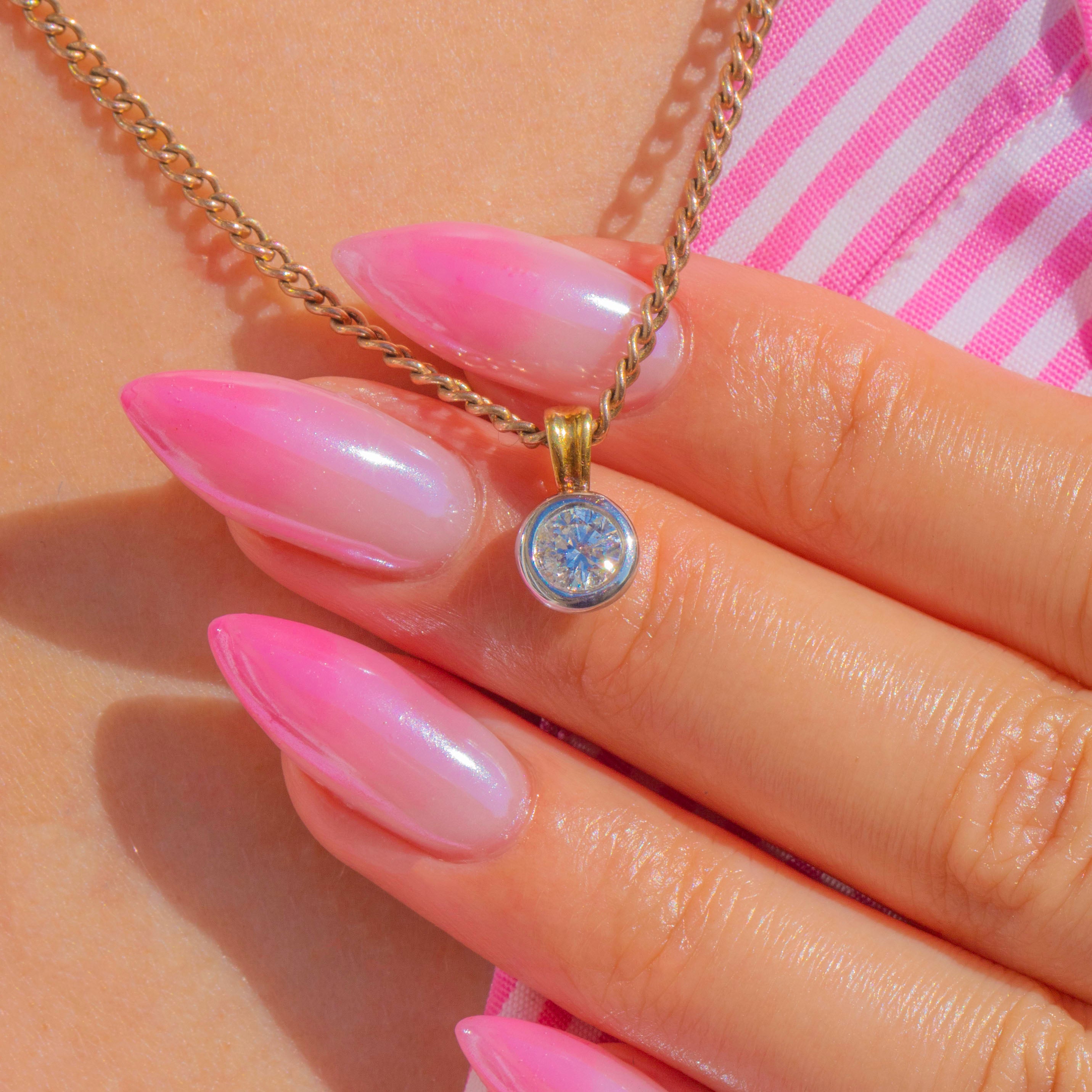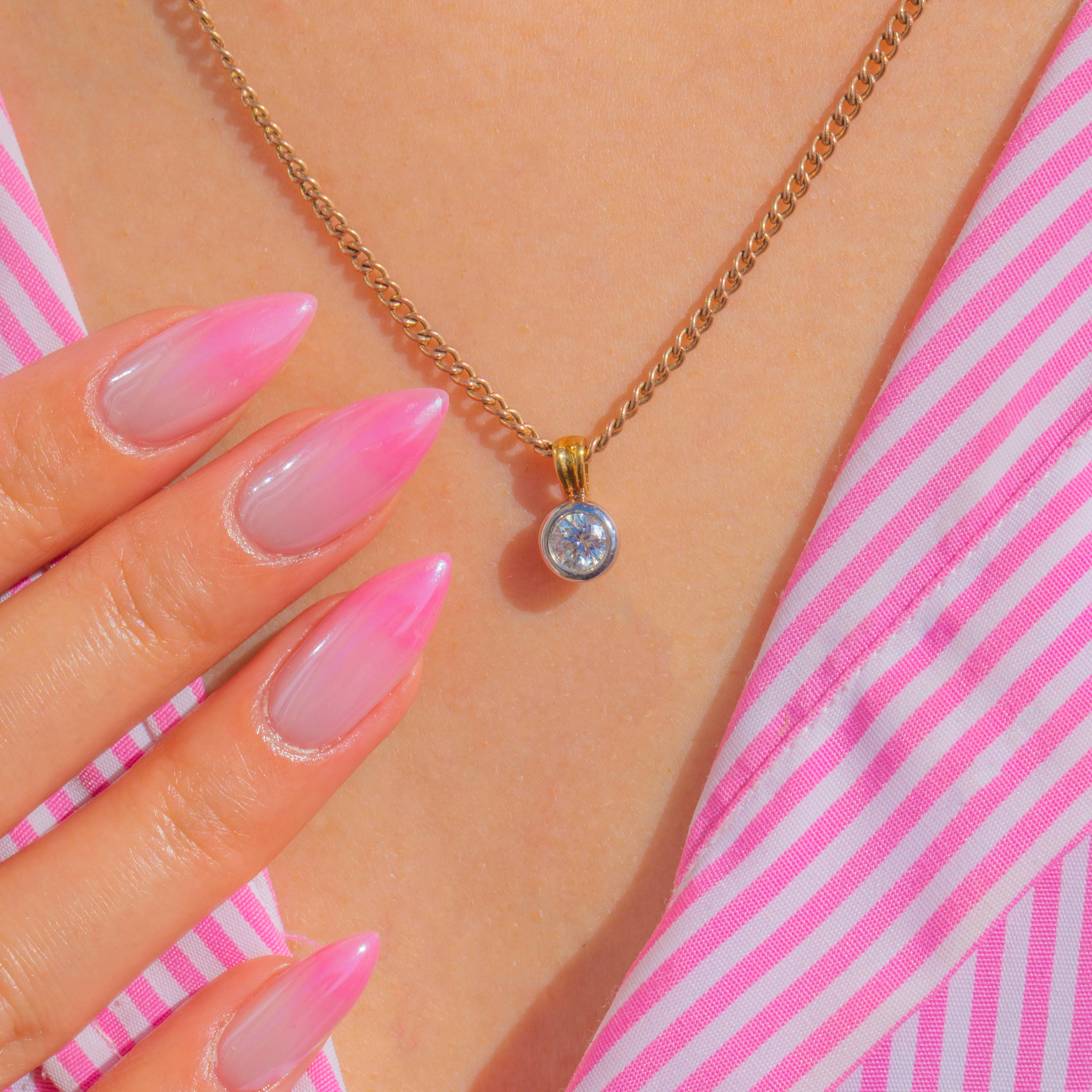 Timeless and beautifully understated, this Vintage solitaire charm pairs warm 18ct Gold with cool Platinum in a sleek bezel design. The round Natural Diamond of approximately 0.50ct sits bright and secure within its Platinum surround, the perfect contrast to the polished 18ct Gold bail. Elegant and minimal, it’s a forever piece that slips effortlessly into any collection.