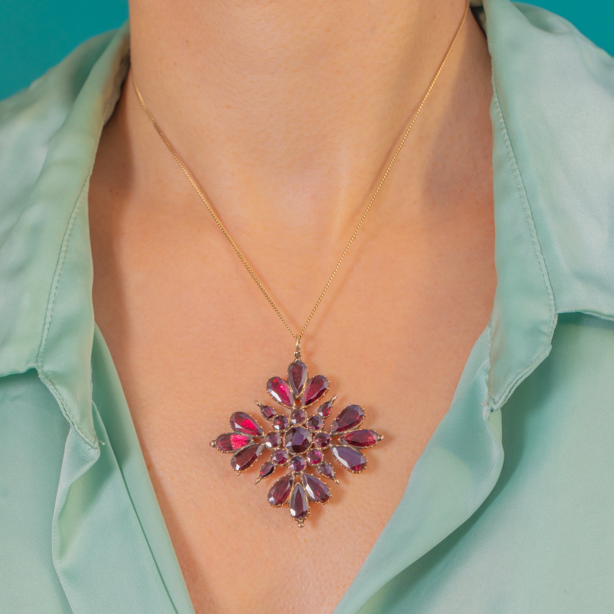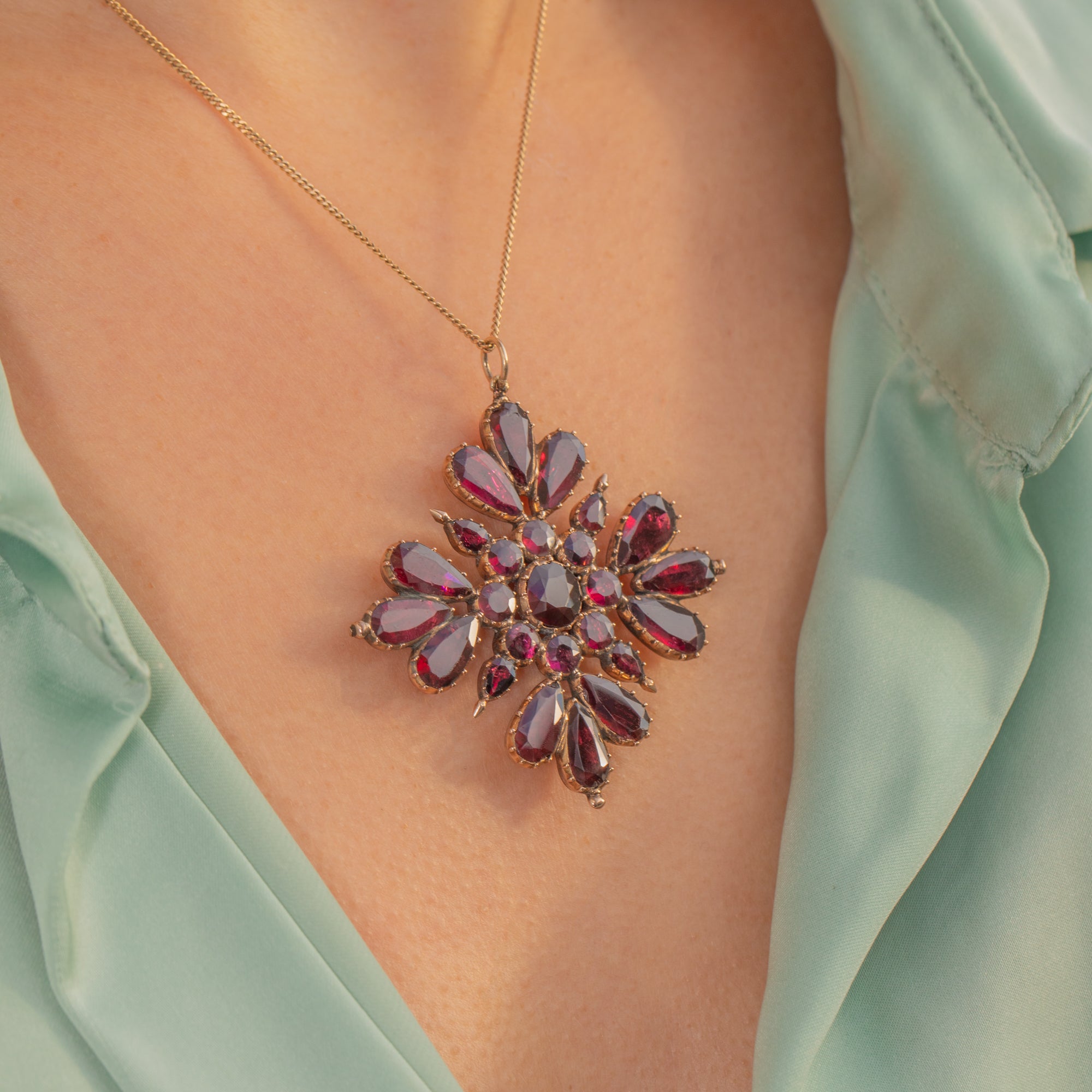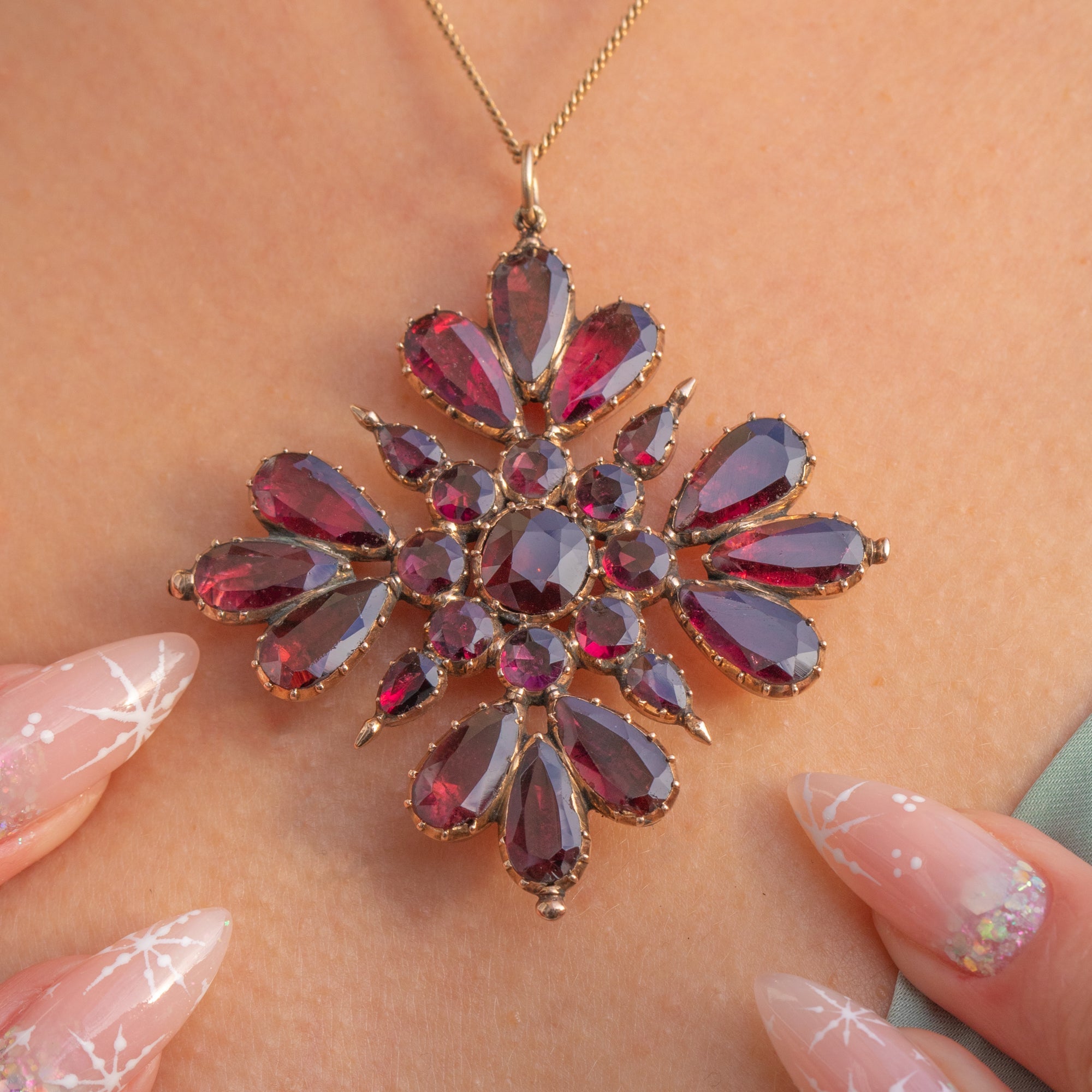 It wears like a jewel with presence. A burst of colour and symmetry, steeped in history, with that glowing wine-red tone that only antique Garnets deliver. A remarkable survivor from the Georgian era.