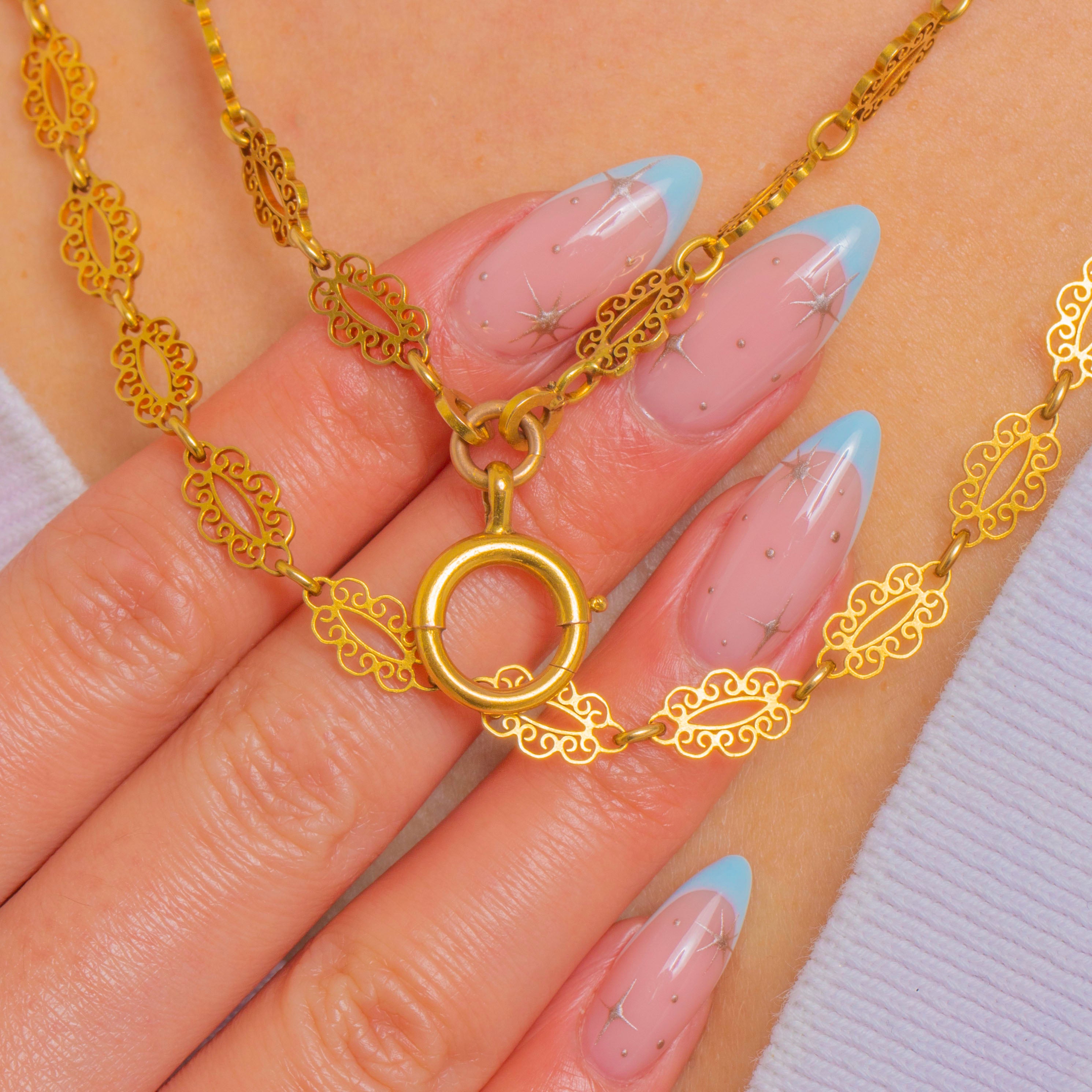 60" Victorian 18ct Gold Filigree Chain with Bolt-Ring