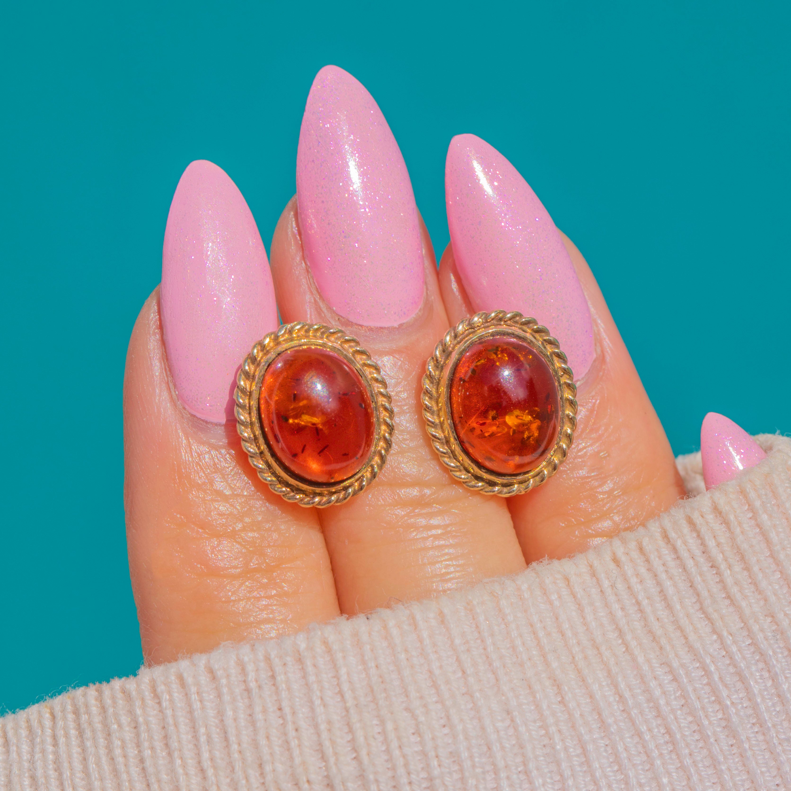 The Amber shows beautiful natural inclusions and a glossy polish, its honeyed tones complemented by the buttery Gold. Understated yet distinctive, these timeless studs are an easy choice for effortless, wear‑everywhere sophistication.