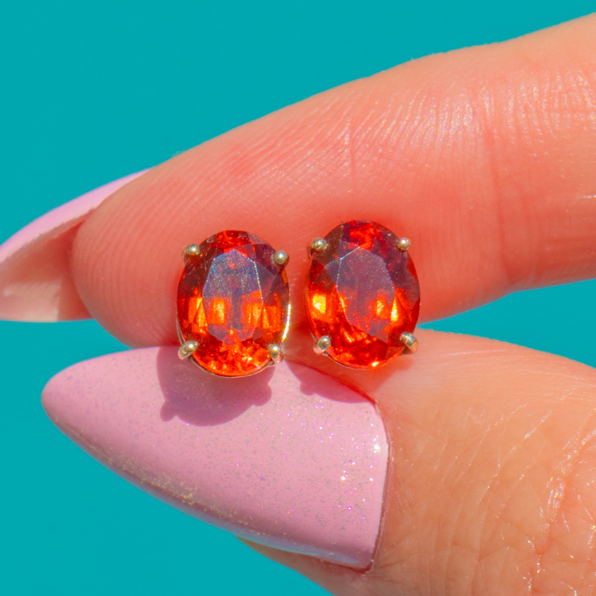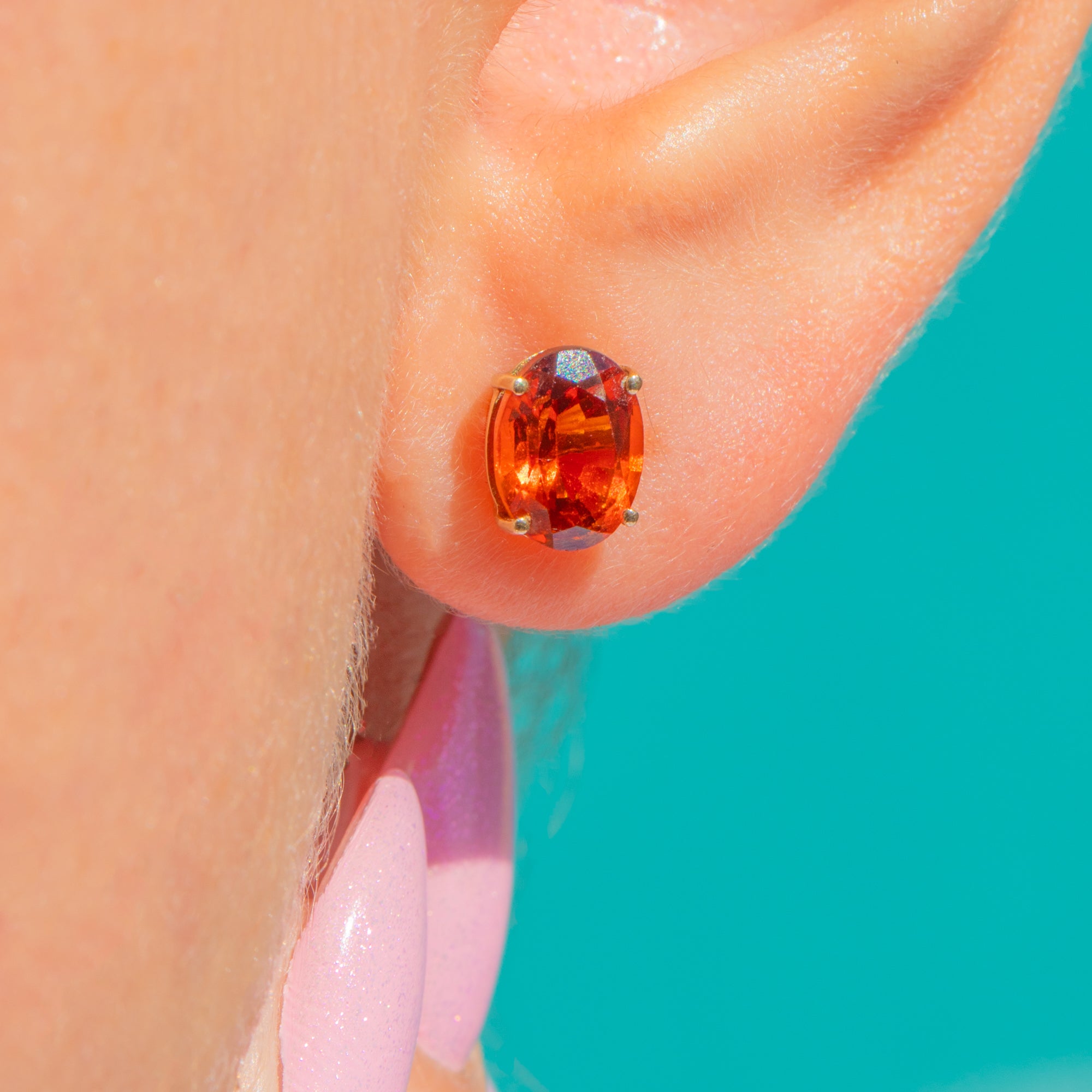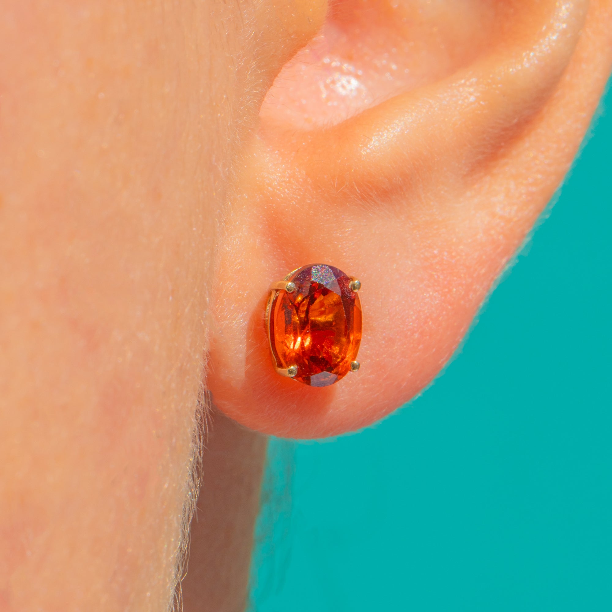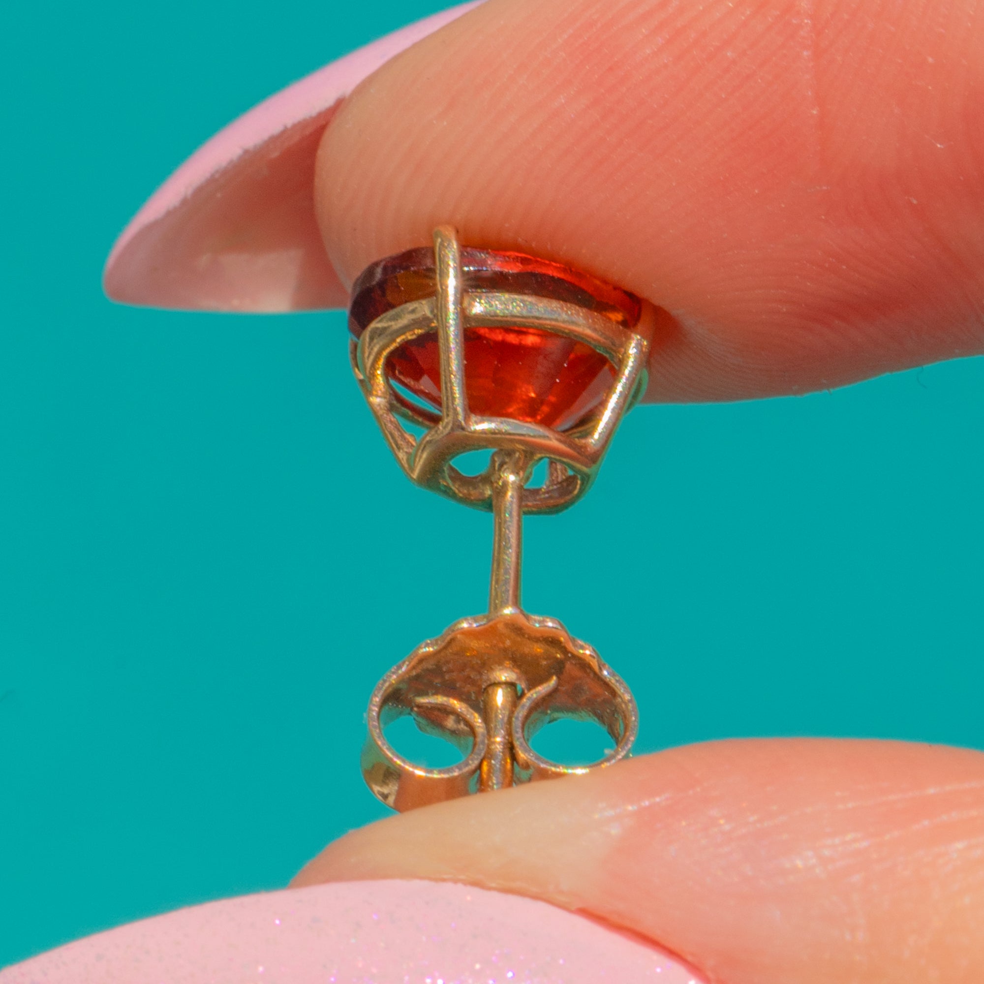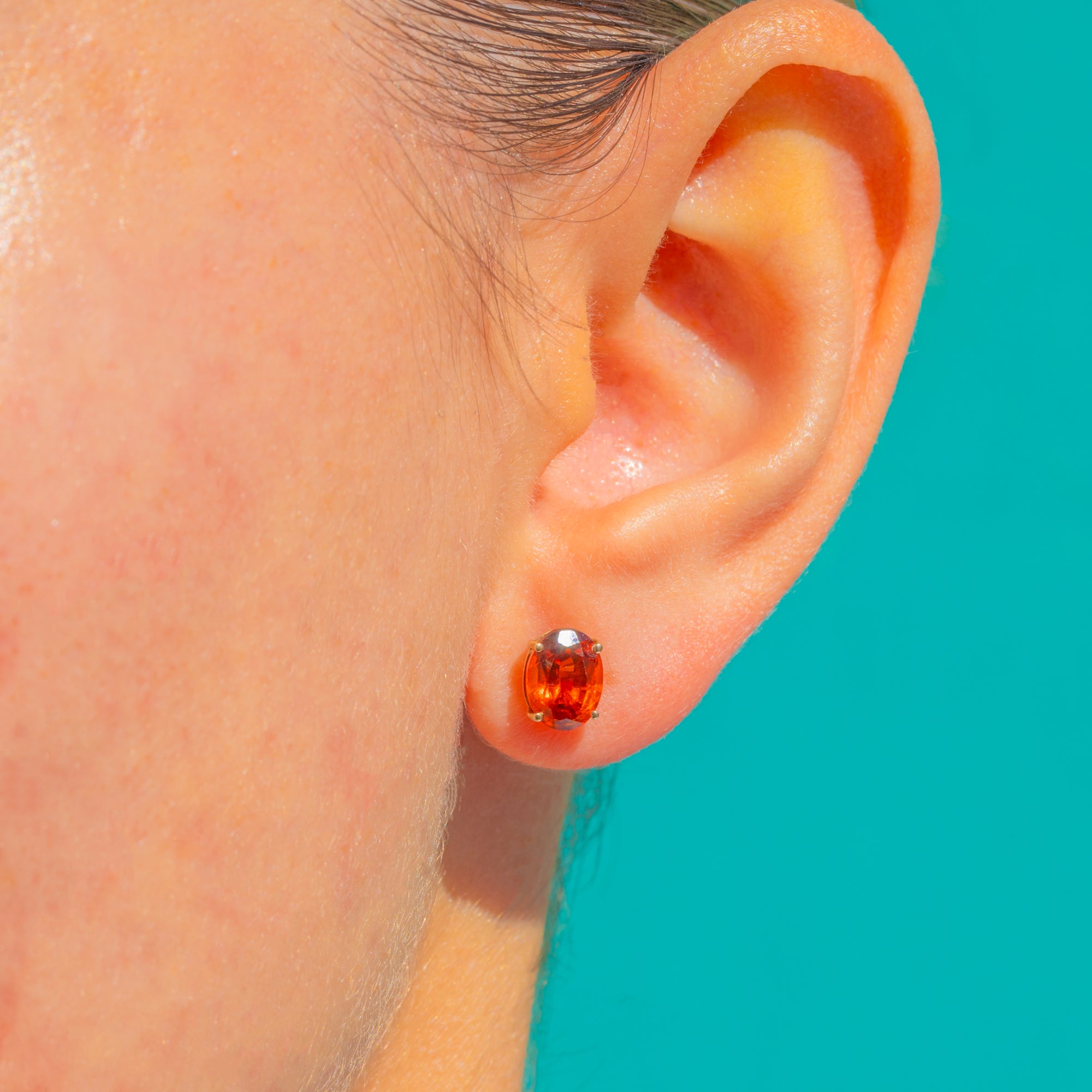 Suffused with the rich glow of Madeira sunshine, these Vintage 9ct Gold stud earrings showcase a pair of vivid oval Citrines in classic four-claw settings. Their clean, minimalist silhouette lets the saturated orange tones take centre stage, delivering a joyful pop of colour that feels both timeless and effortlessly modern.