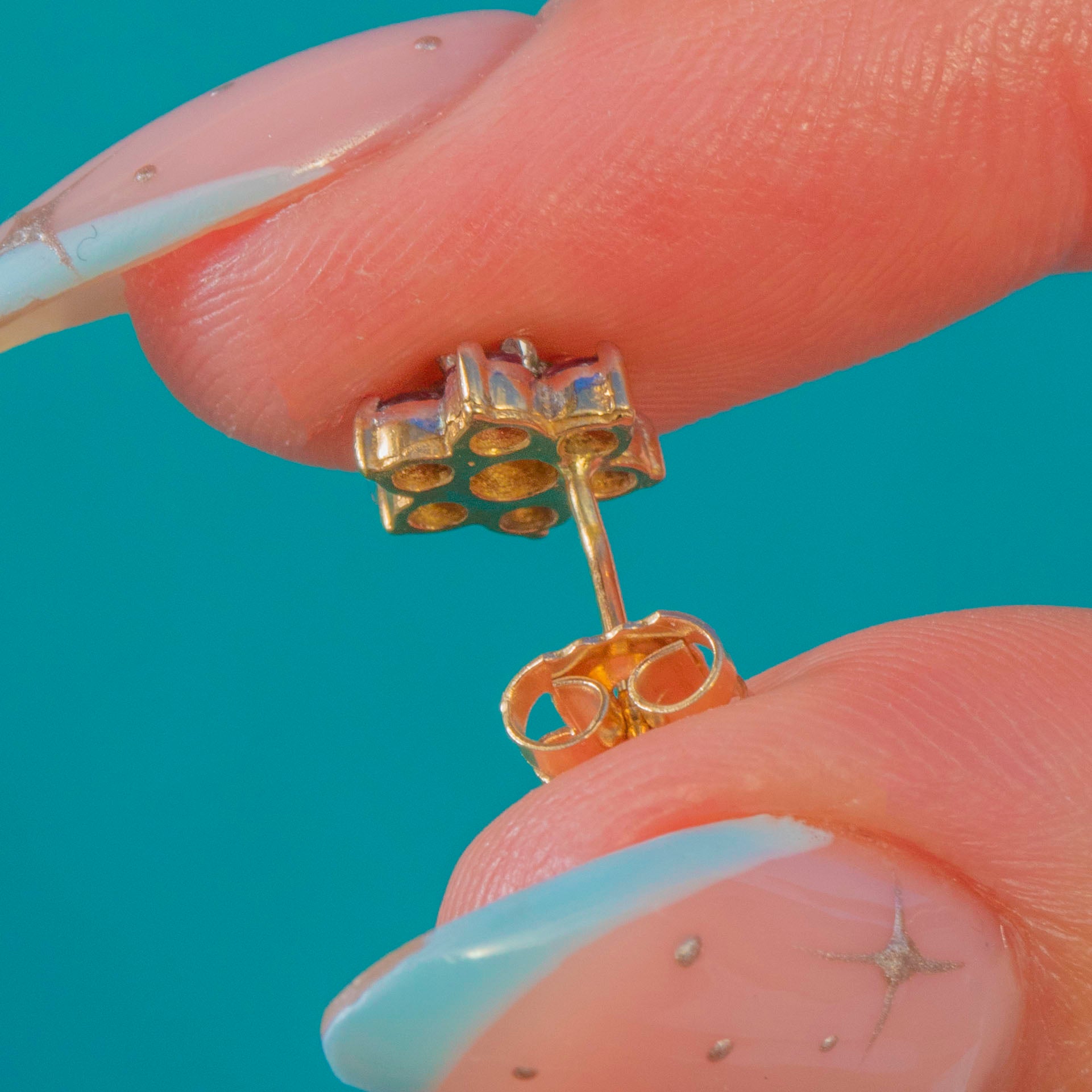 Crafted in 9ct Gold with a chic two-tone look—White Gold topped settings over a Yellow Gold gallery—they sit neatly on the lobe and fasten with classic posts and butterfly backs. Delicate, feminine and effortless, they’re an easy lift from desk to dinner.