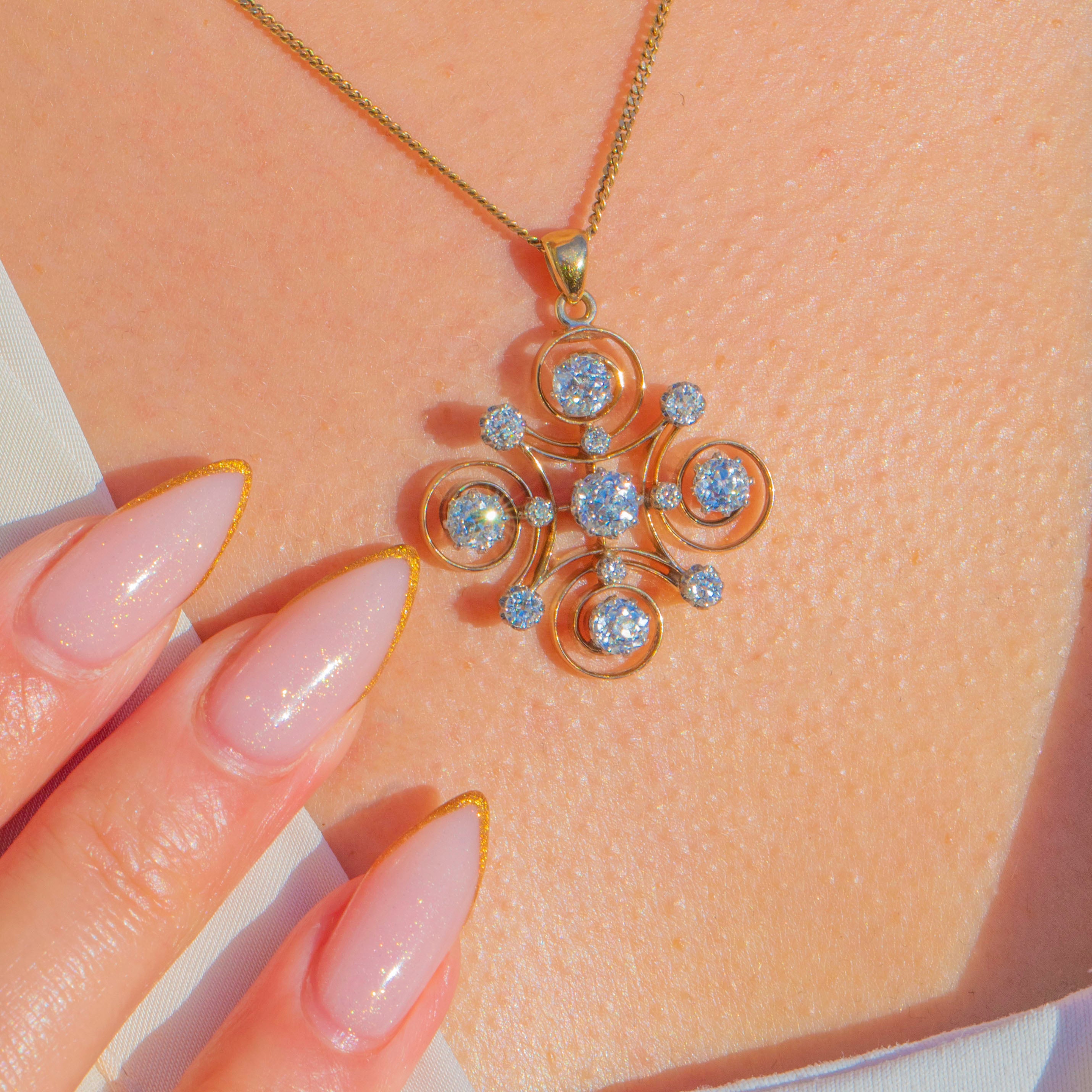 Antique 15ct Gold Diamond Pendant, 1.46cts Old Mine-Cut Diamonds