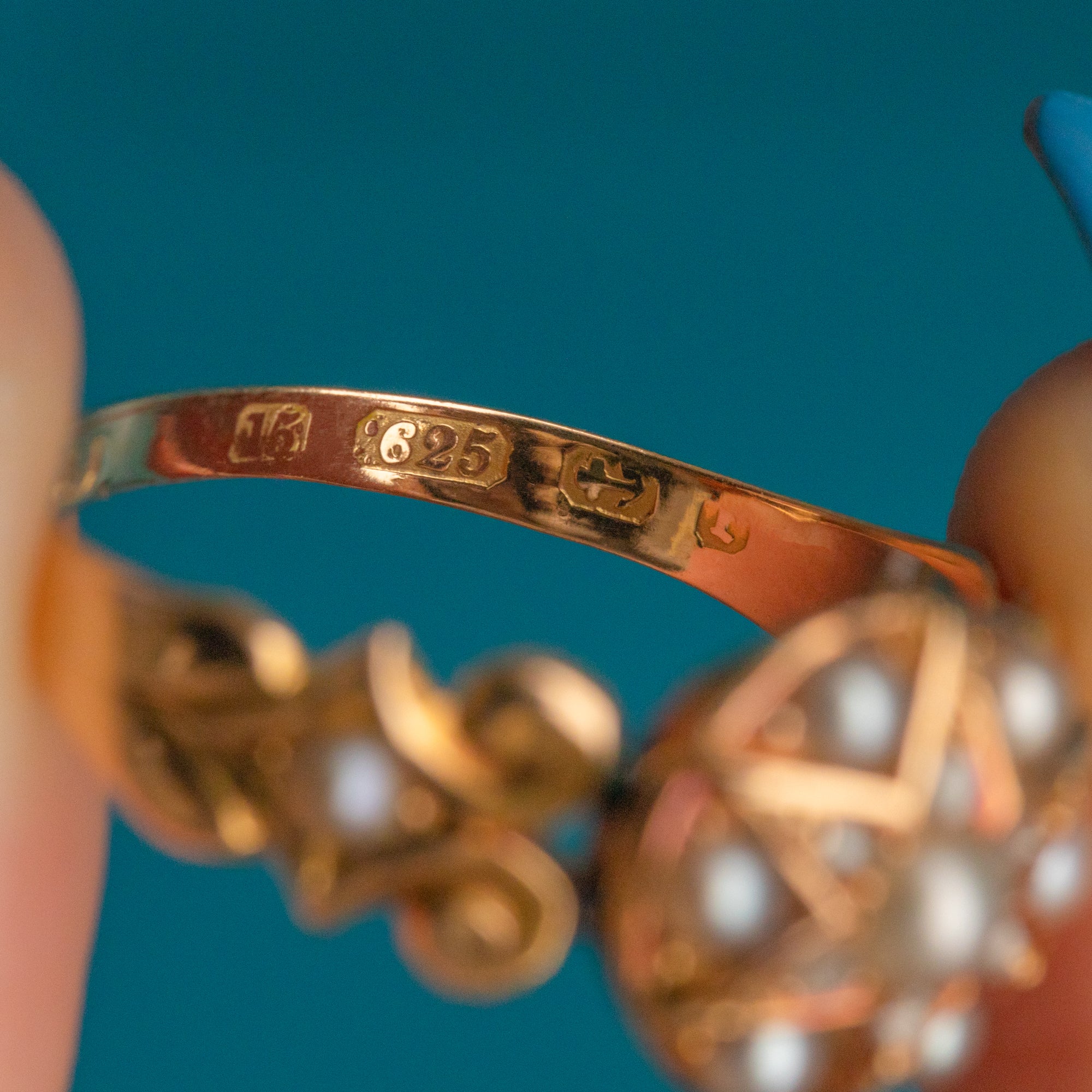 MATERIALS: 15ct Gold, Pearl, Diamond.