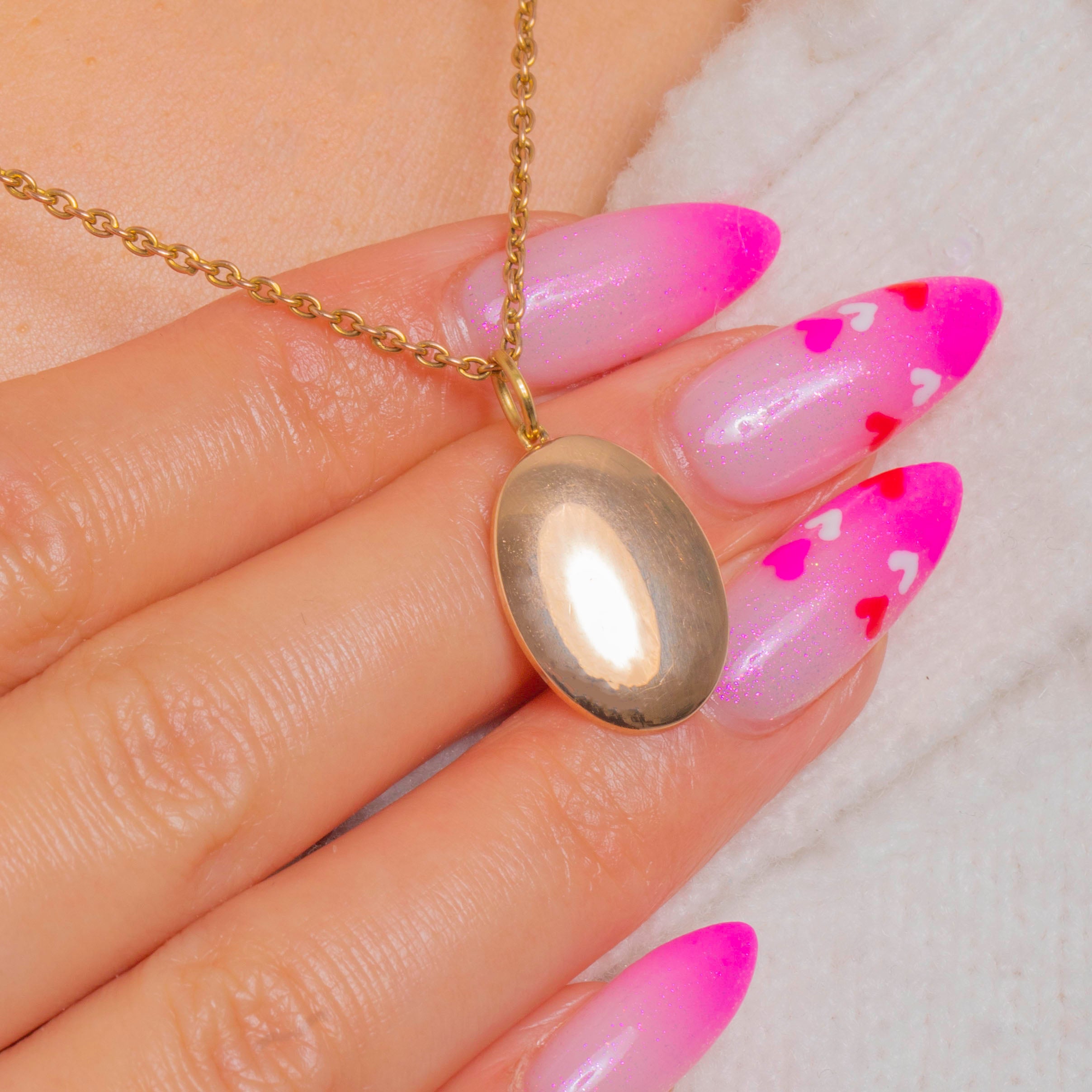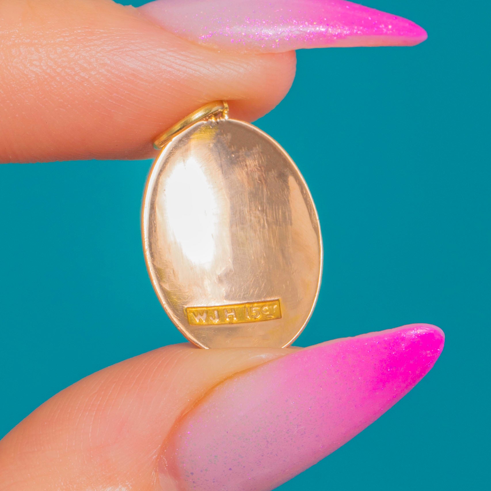 EXCELLENT: Light surface wear commensurate with age, including fine hairline scratches and subtle polishing marks visible under magnification. The domed shell and closed back are free from dents, and the hasp and jump ring are secure.