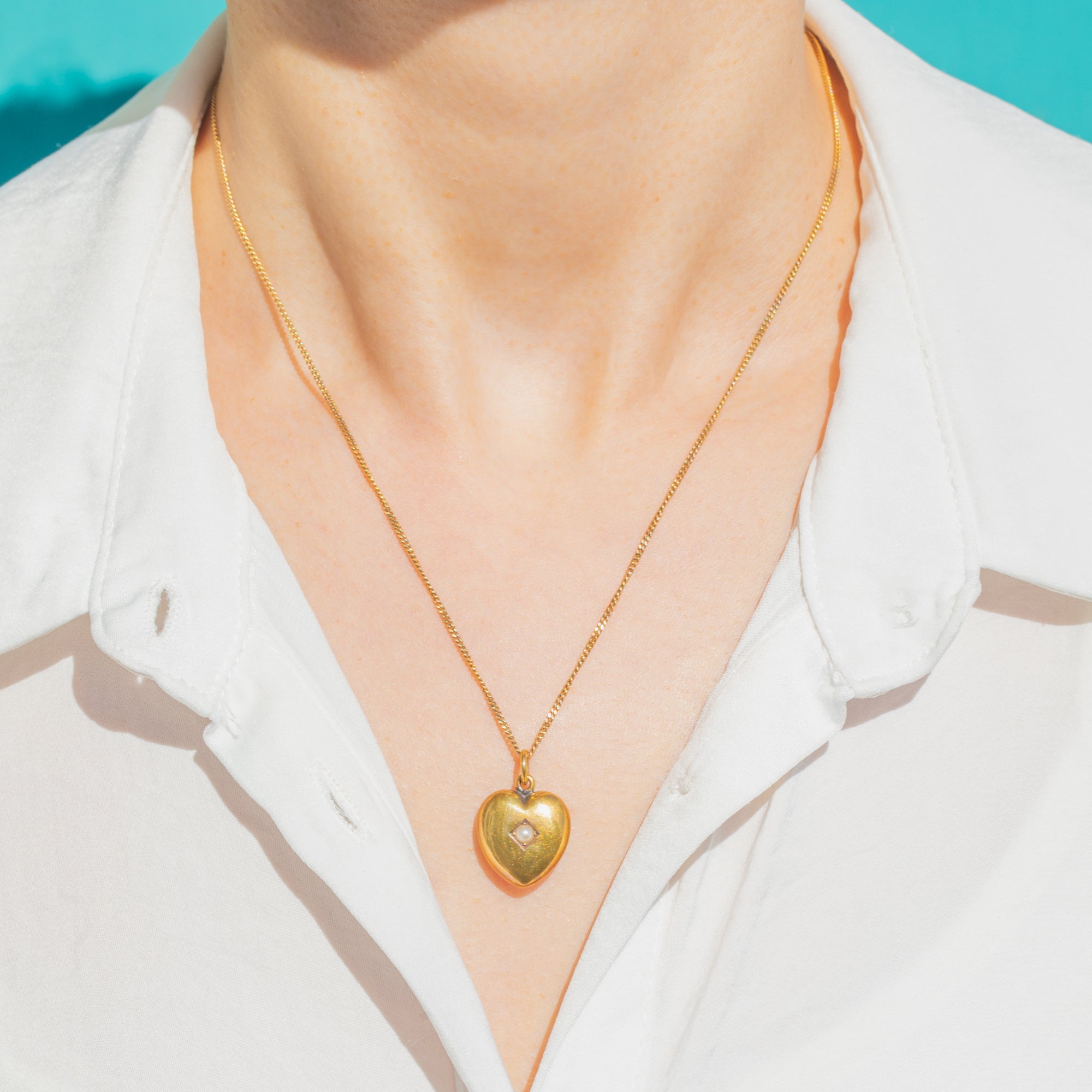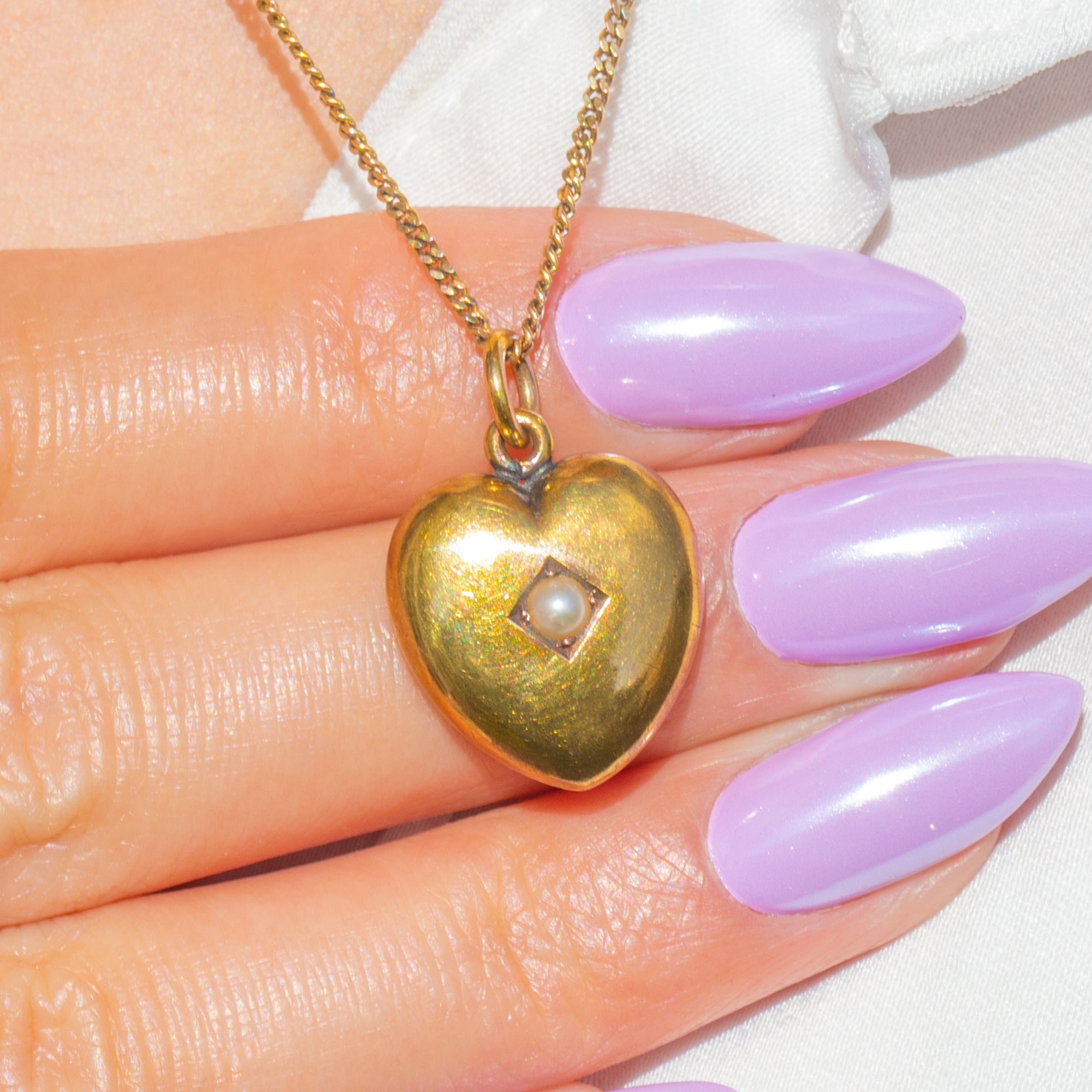 Sweetly sentimental and endlessly wearable, this Victorian puffy heart pendant is crafted in glowing 15ct Gold and set with a dainty Seed Pearl at its centre. The softly domed silhouette catches the light beautifully, while a delicate lozenge setting frames the Pearl for a refined, romantic finish.