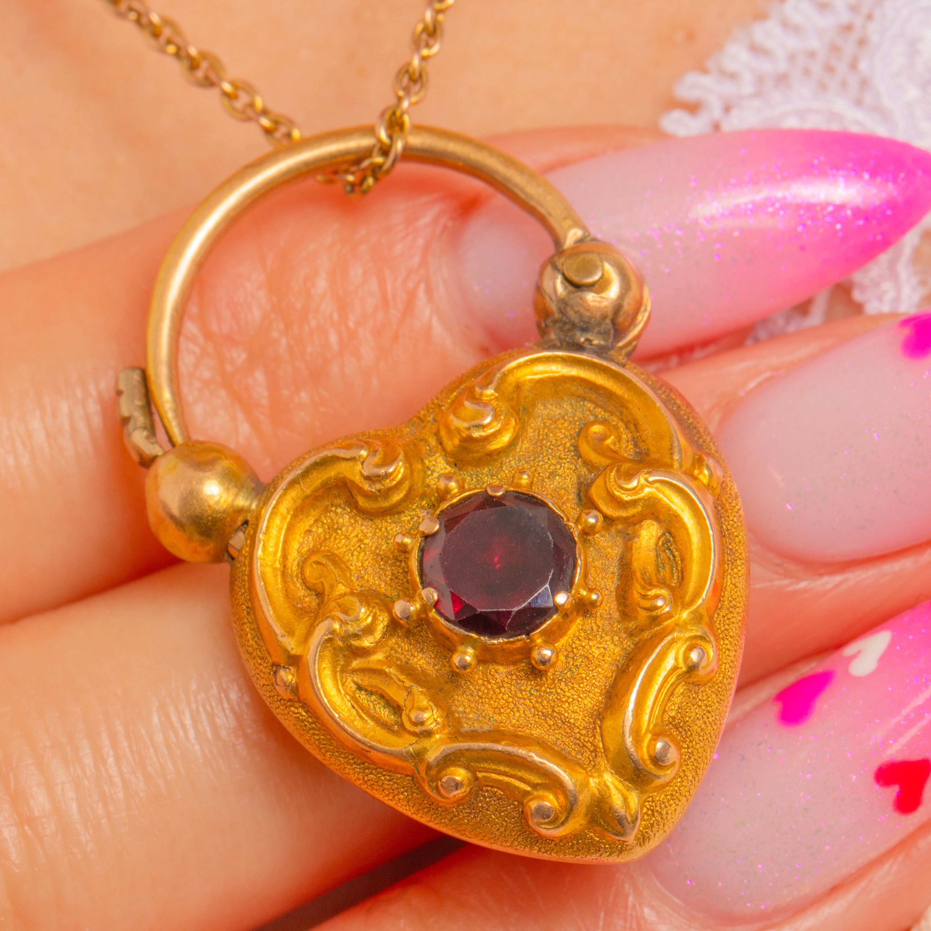 Antique 18ct Gold Garnet Heart Padlock