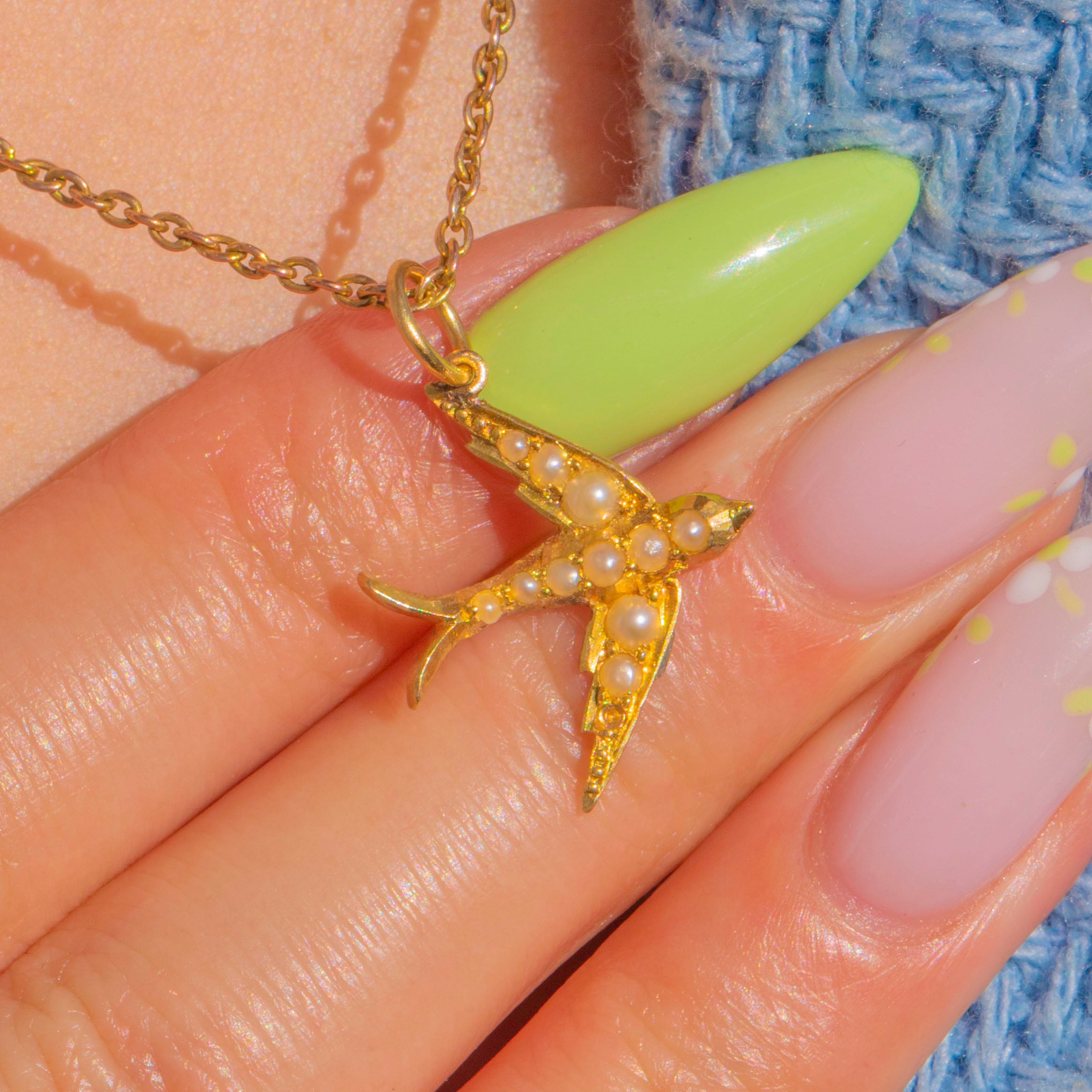 Antique 18ct Gold Pearl Swallow Bird Charm