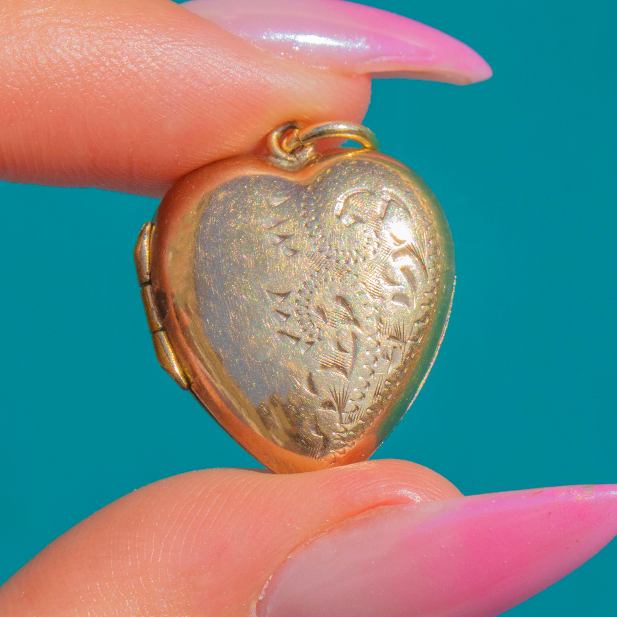 Antique 9ct Gold Engraved Puffy Heart Locket