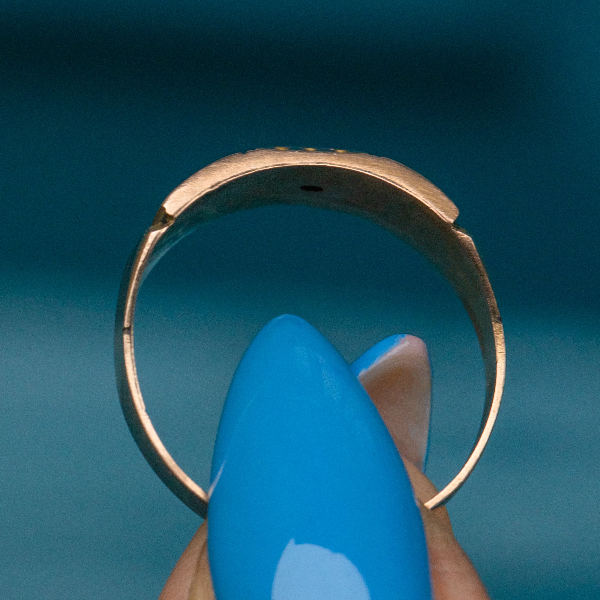 Crafted from glossy 9ct Gold with intricate details that spread the width of your finger, this antique gypsy ring will make a striking addition to your ring stack. Hallmarked to 1927, at the end of the roaring twenties, this ring is the perfect heirloom for your collection!