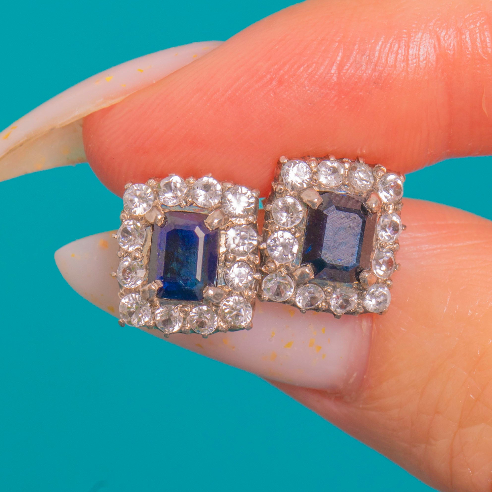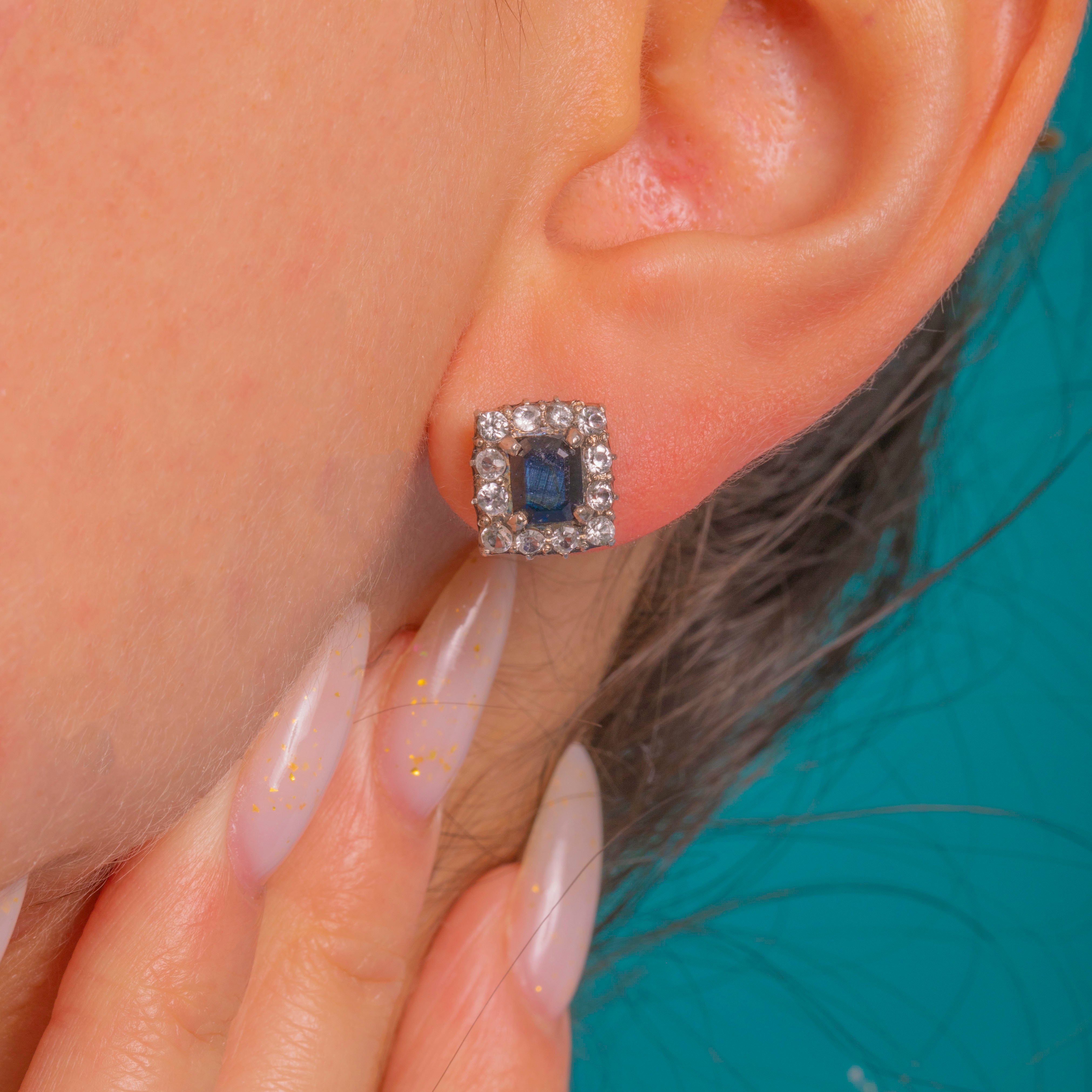 Art Deco 9ct Gold Natural Sapphire Cluster Stud Earrings