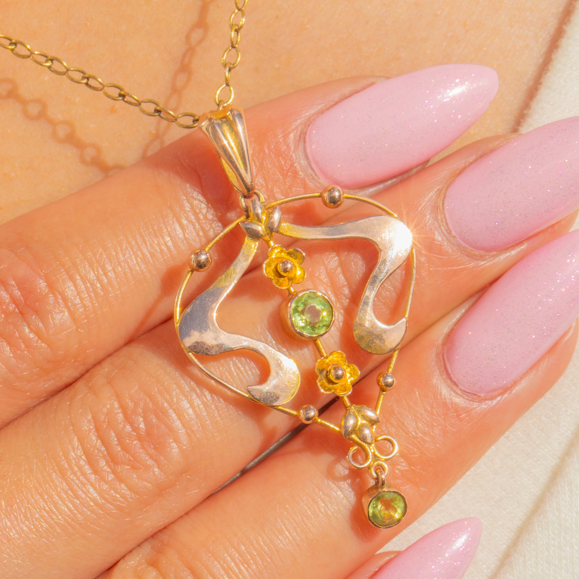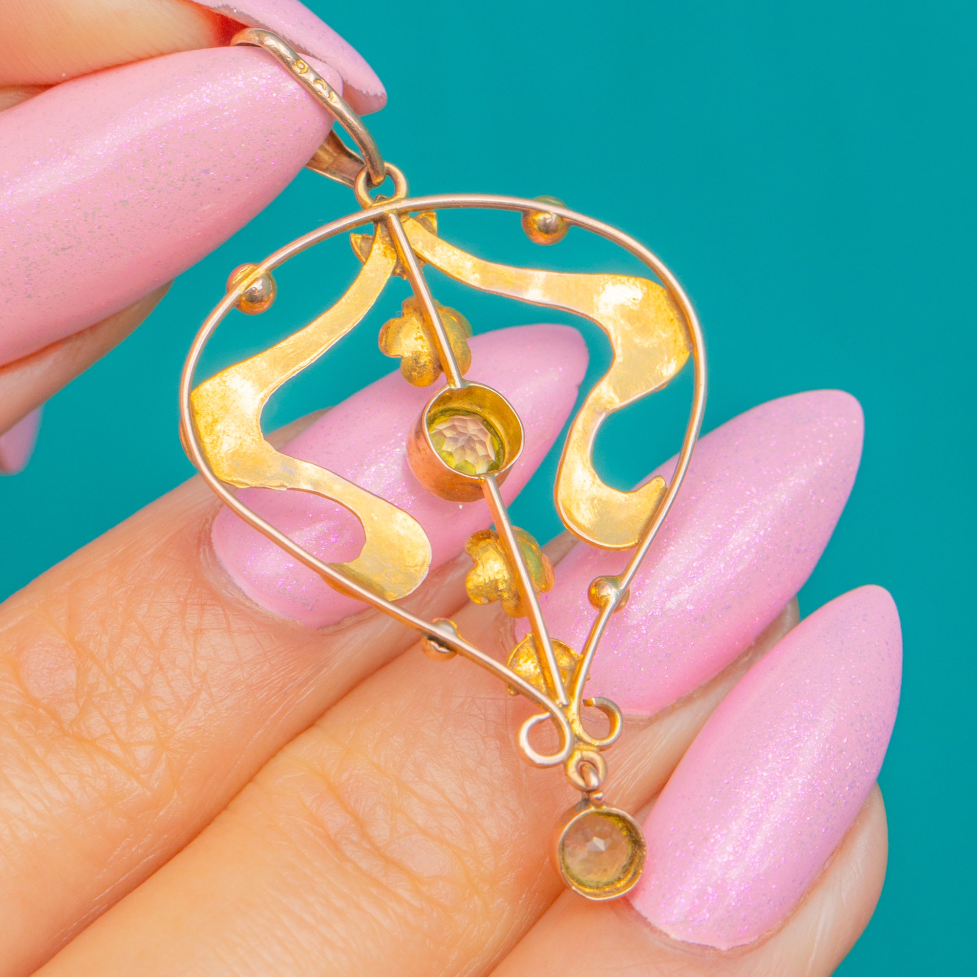 Art Nouveau 9ct Gold Peridot Lavalier Pendant