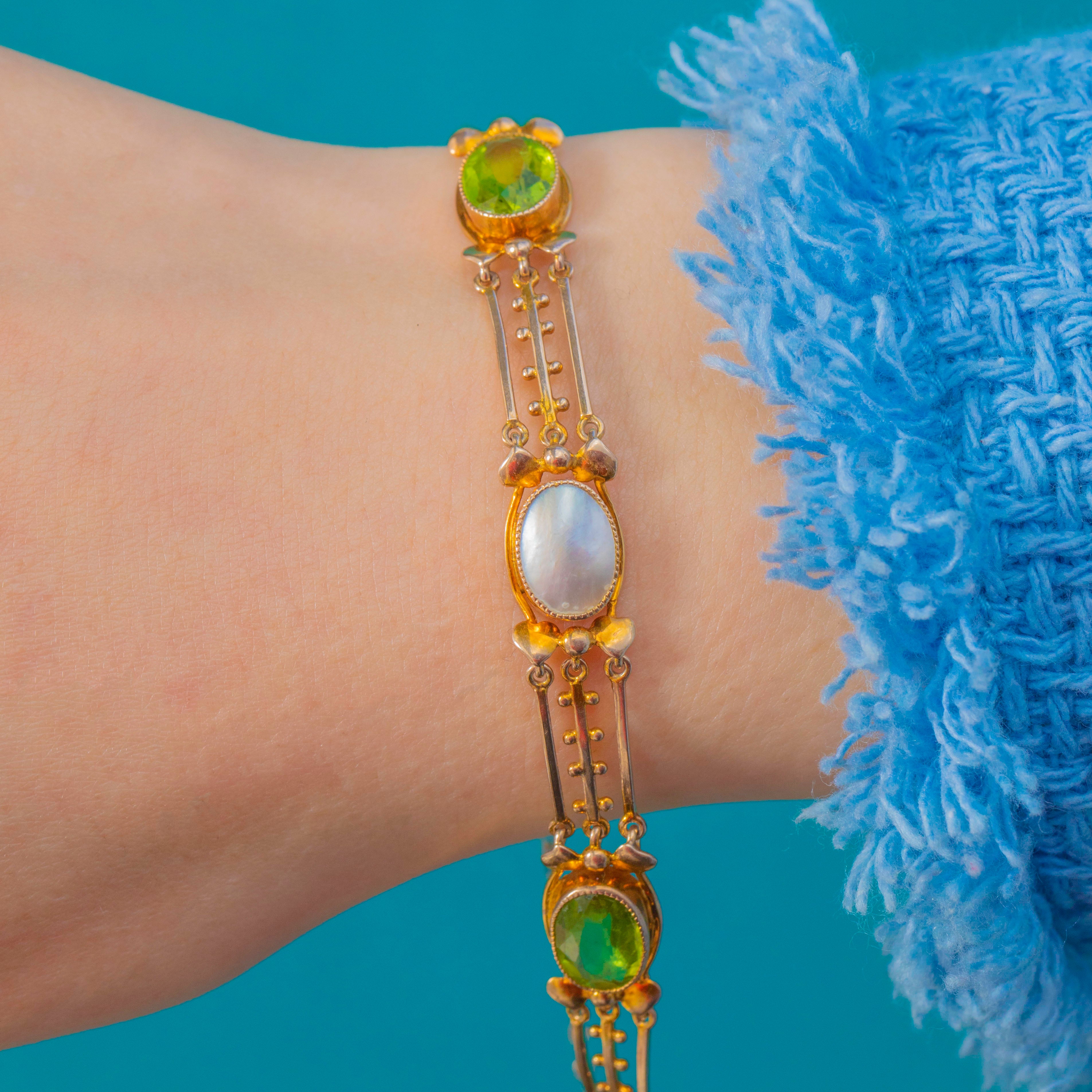 MURRLE BENNETT Art Nouveau 9ct Gold Peridot & Mother-of-Pearl Bracelet