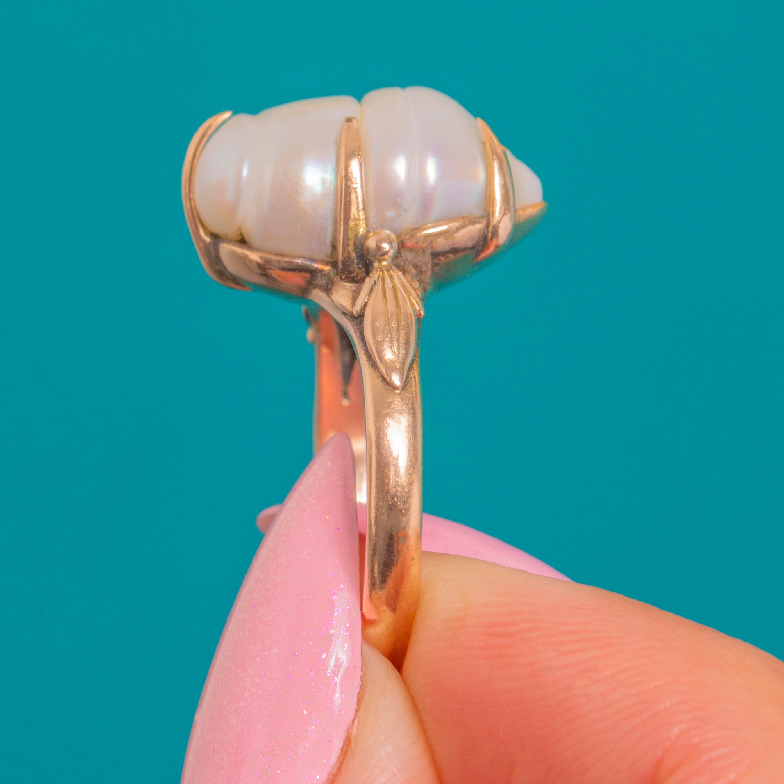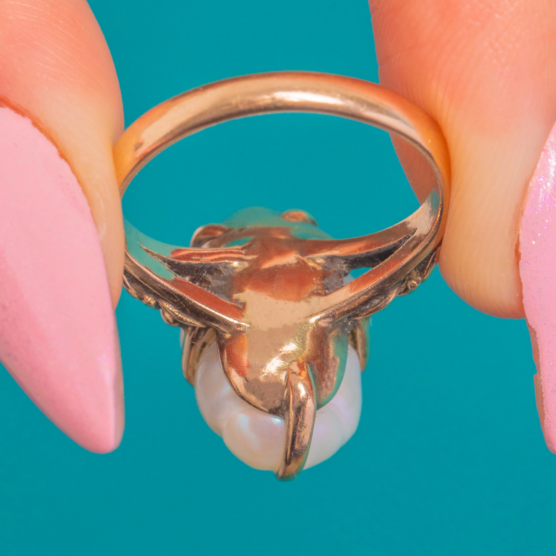 Art Nouveau Era 14ct Gold Baroque Pearl Ring