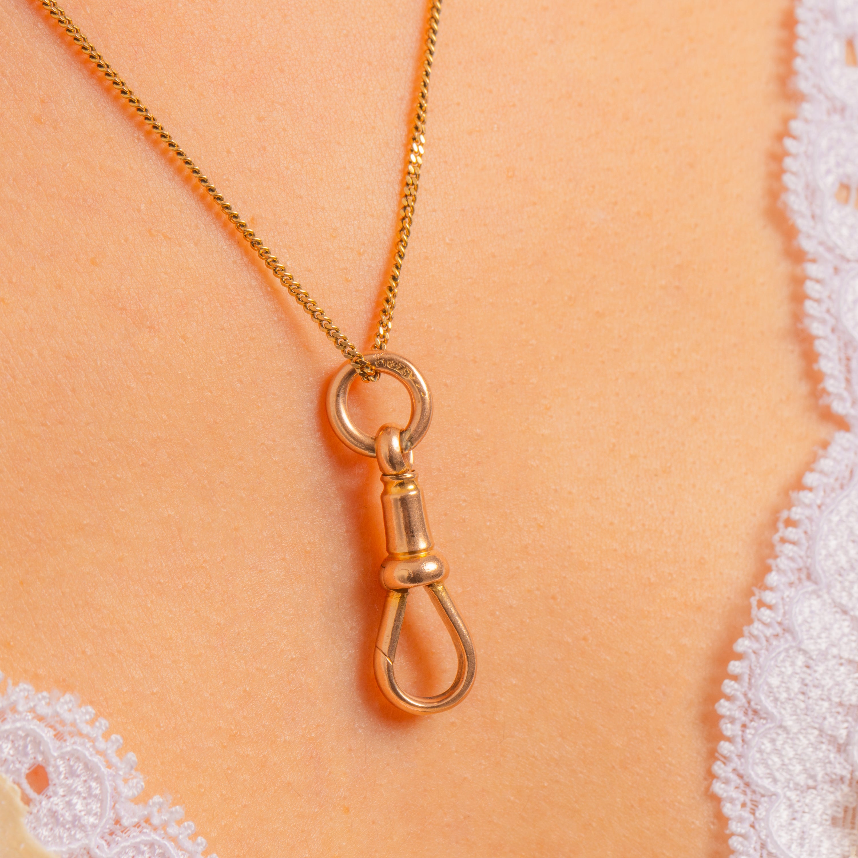A chunky Victorian 9ct Gold dog clip clasp with the perfect balance of utility and elegance. Its rounded silhouette and turned barrel create that classic watch‑chain aesthetic, reimagined today as a beautifully simple charm or pendant holder.
