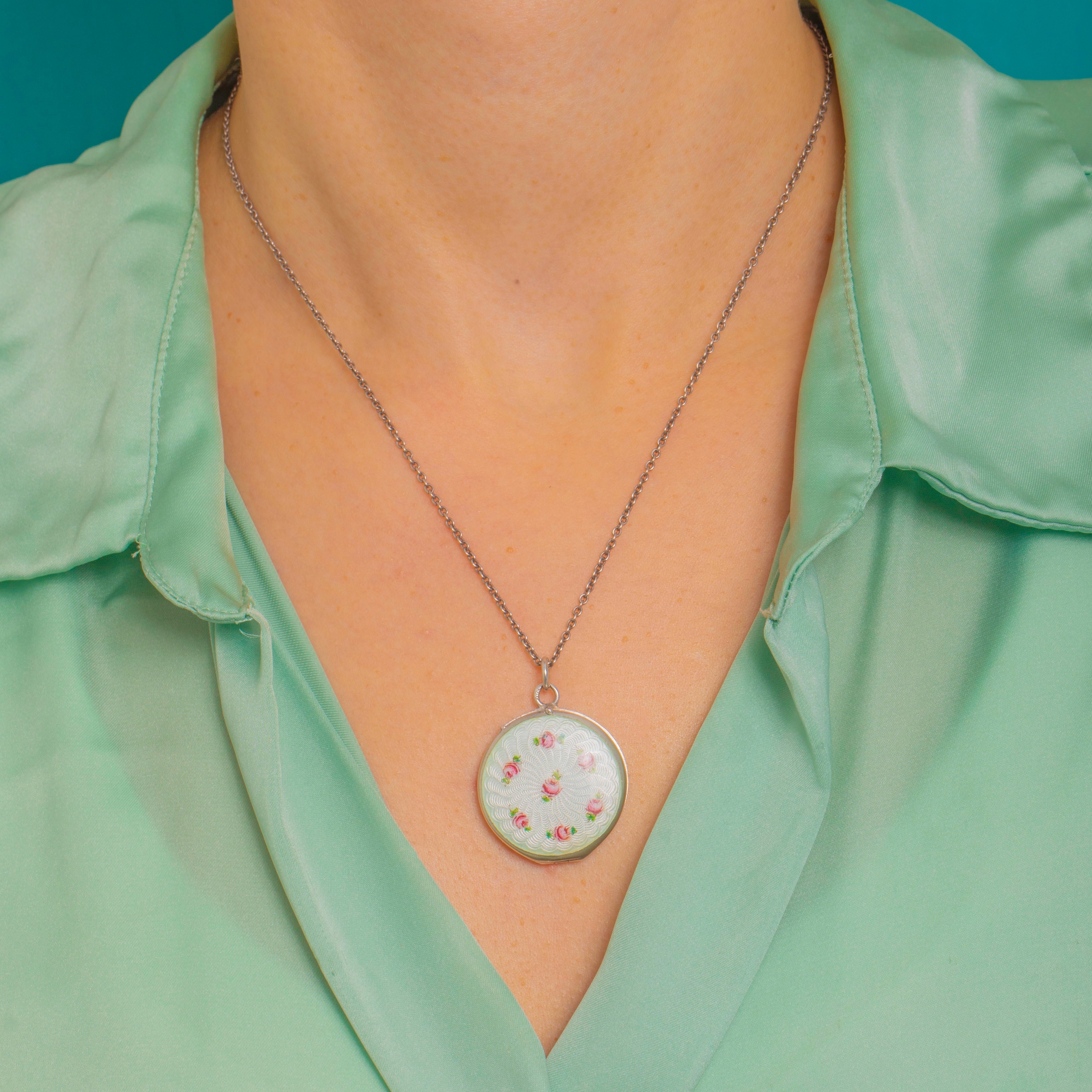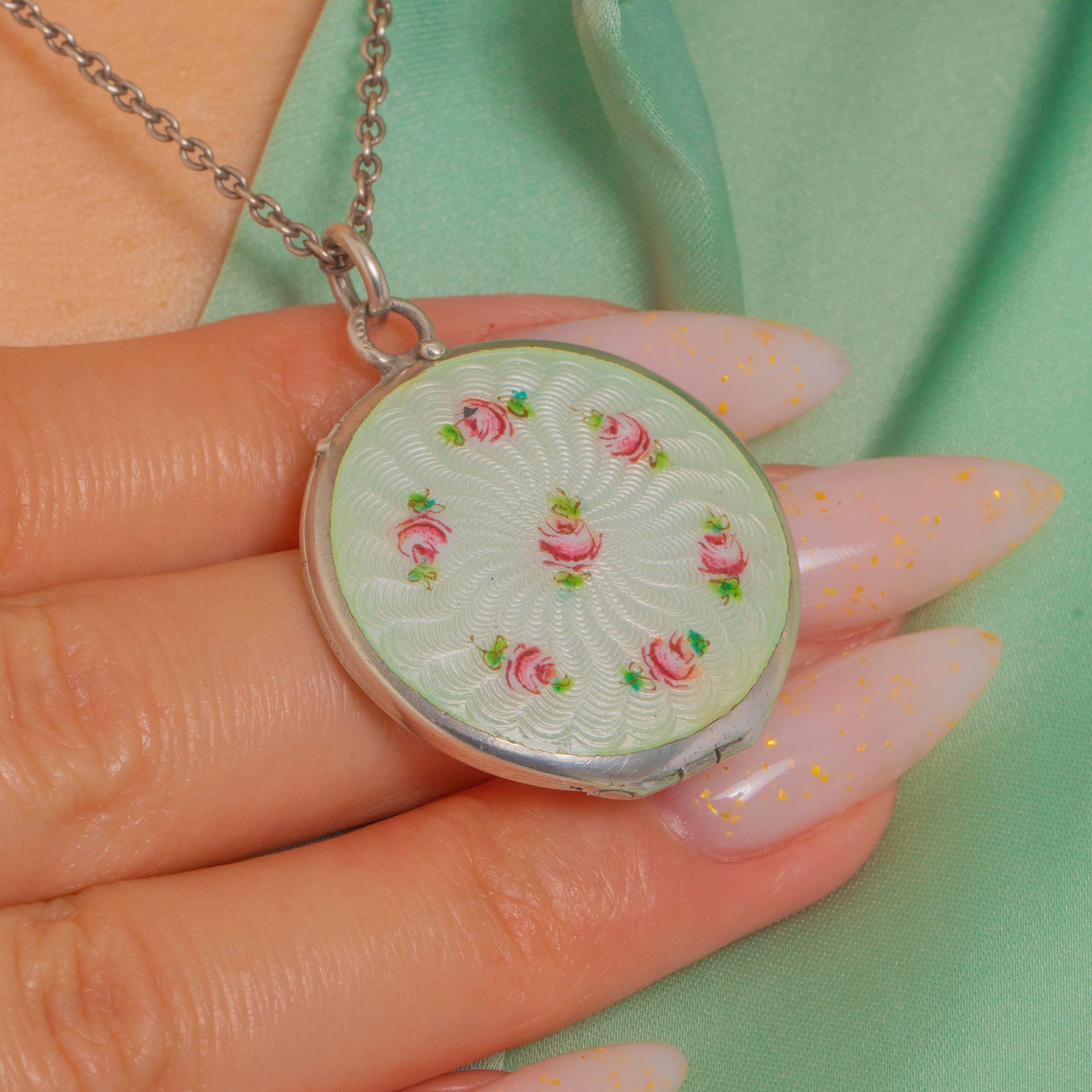 Edwardian Silver White Guilloche Enamel & Roses Locket Item added