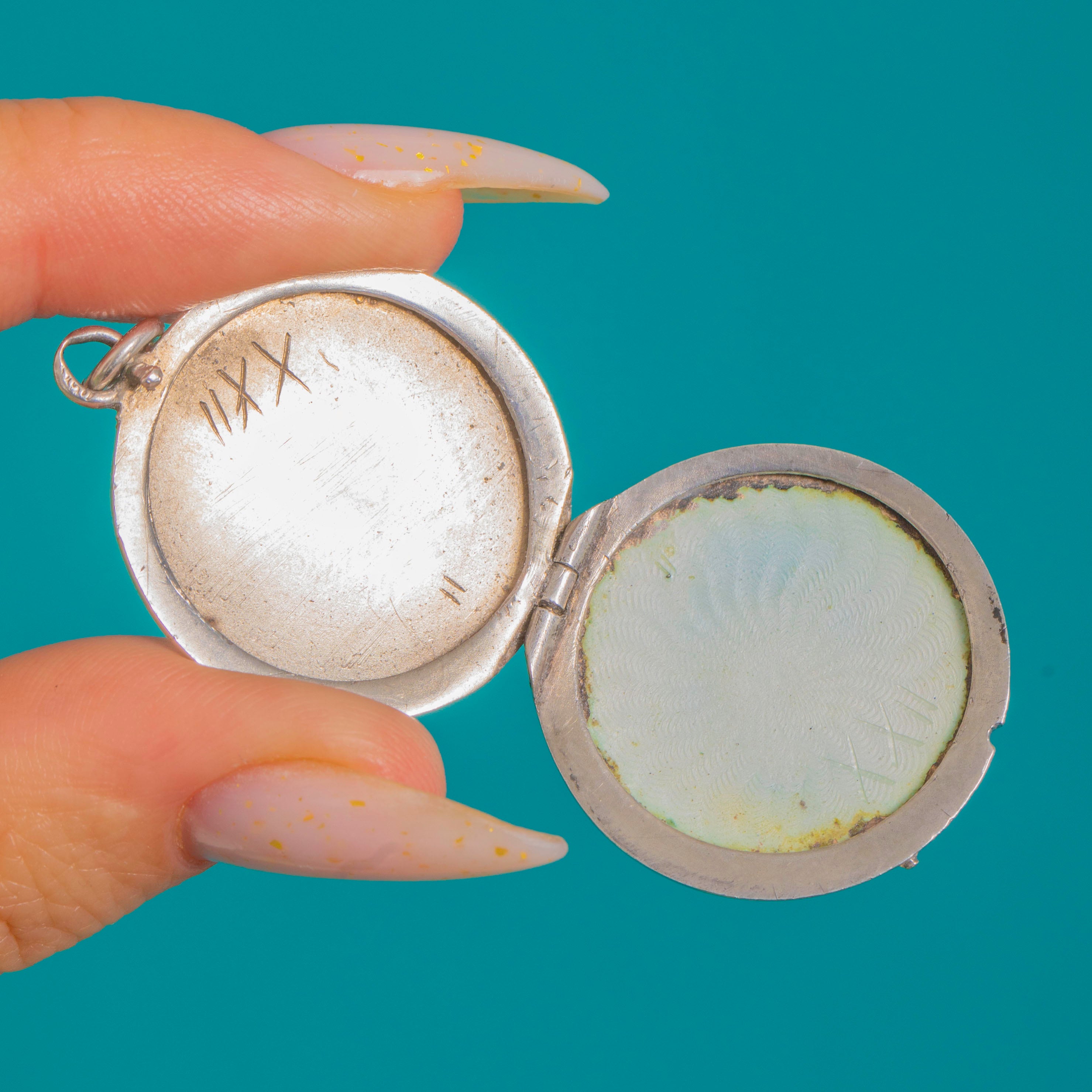 VERY GOOD: The Guilloché Enamel is beautifully preserved with a bright, even finish and only minimal age-related wear. The locket opens and closes perfectly, shutting tightly and securely. Please note: there are no inner frames inside.