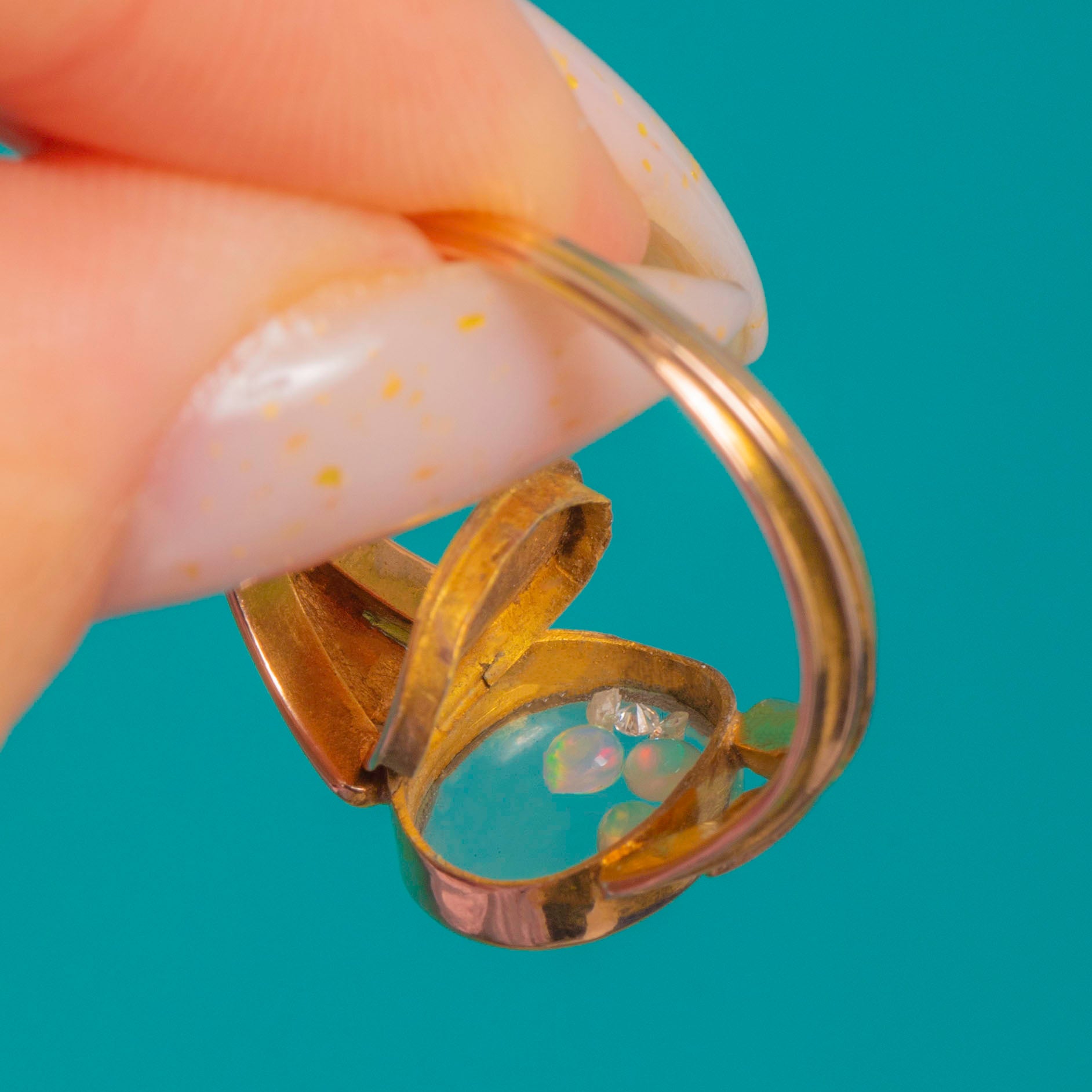 Georgian 15ct Gold Shaker Locket Ring, Loose Opals & Diamonds
