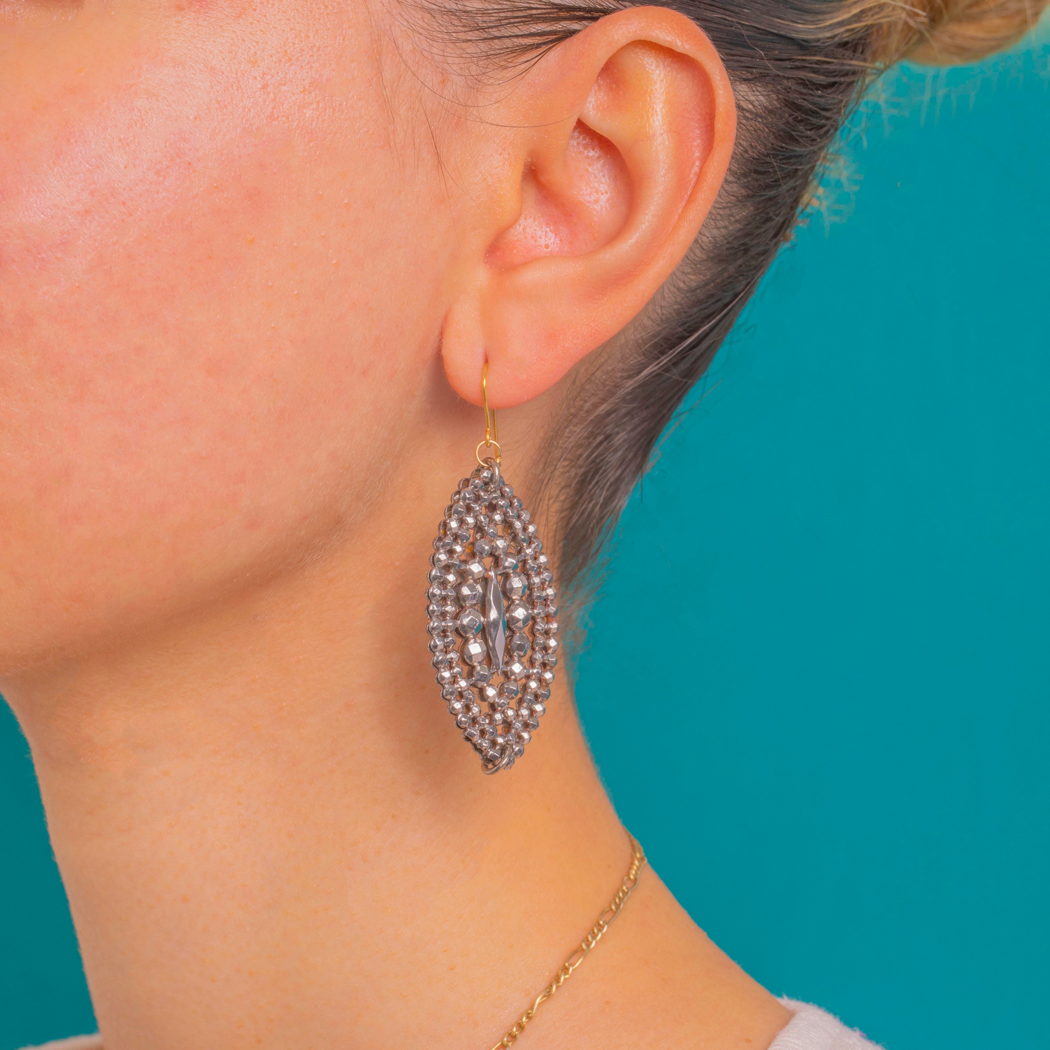 Finished with 9ct Gold shepherd hooks, they offer a refined contrast to the cool, silvery-grey gleam of the cut steel. A dramatic yet timeless statement, they embody the poise and splendour of Georgian style in a wearable, sculptural form.