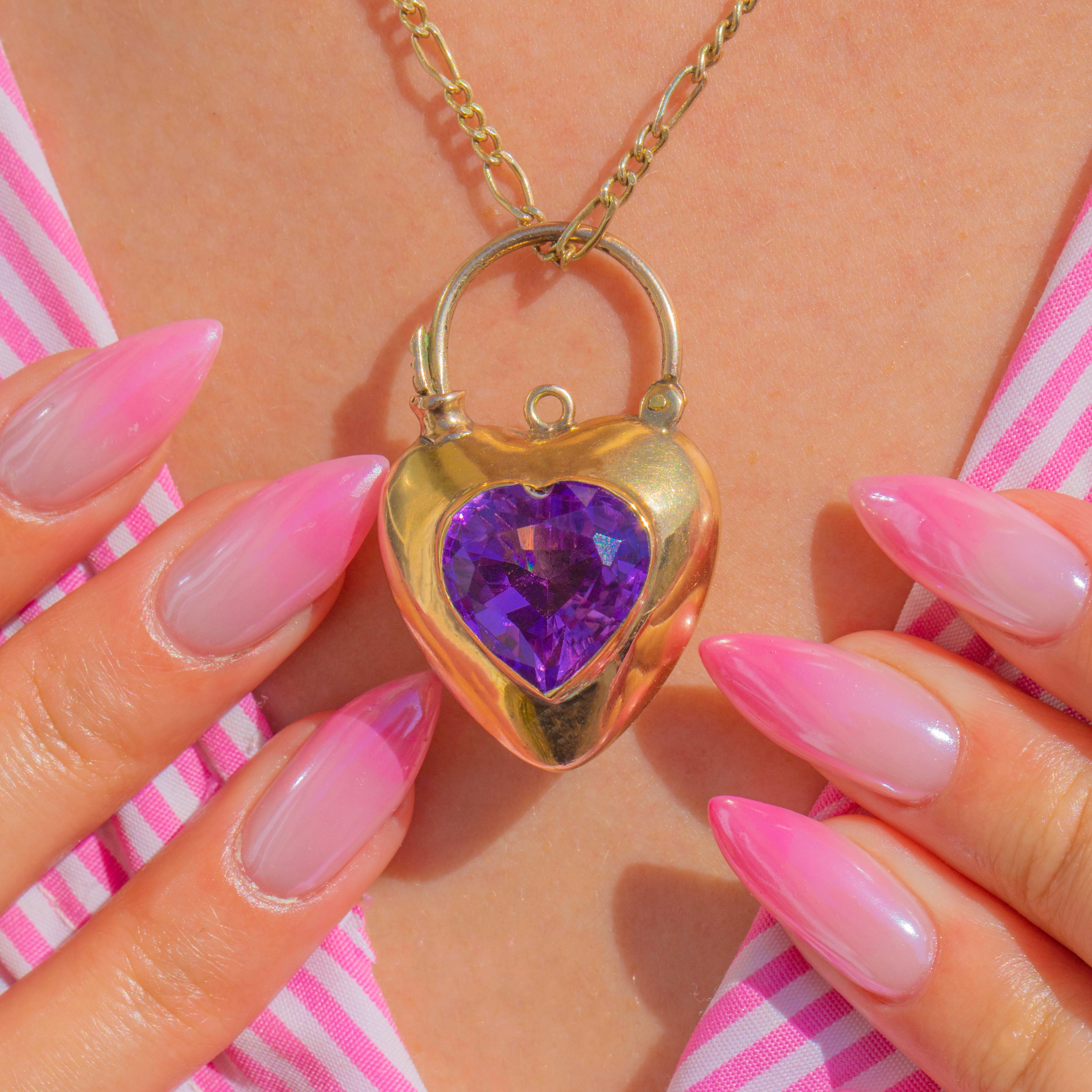 Large Antique 15ct Gold Amethyst Heart Padlock