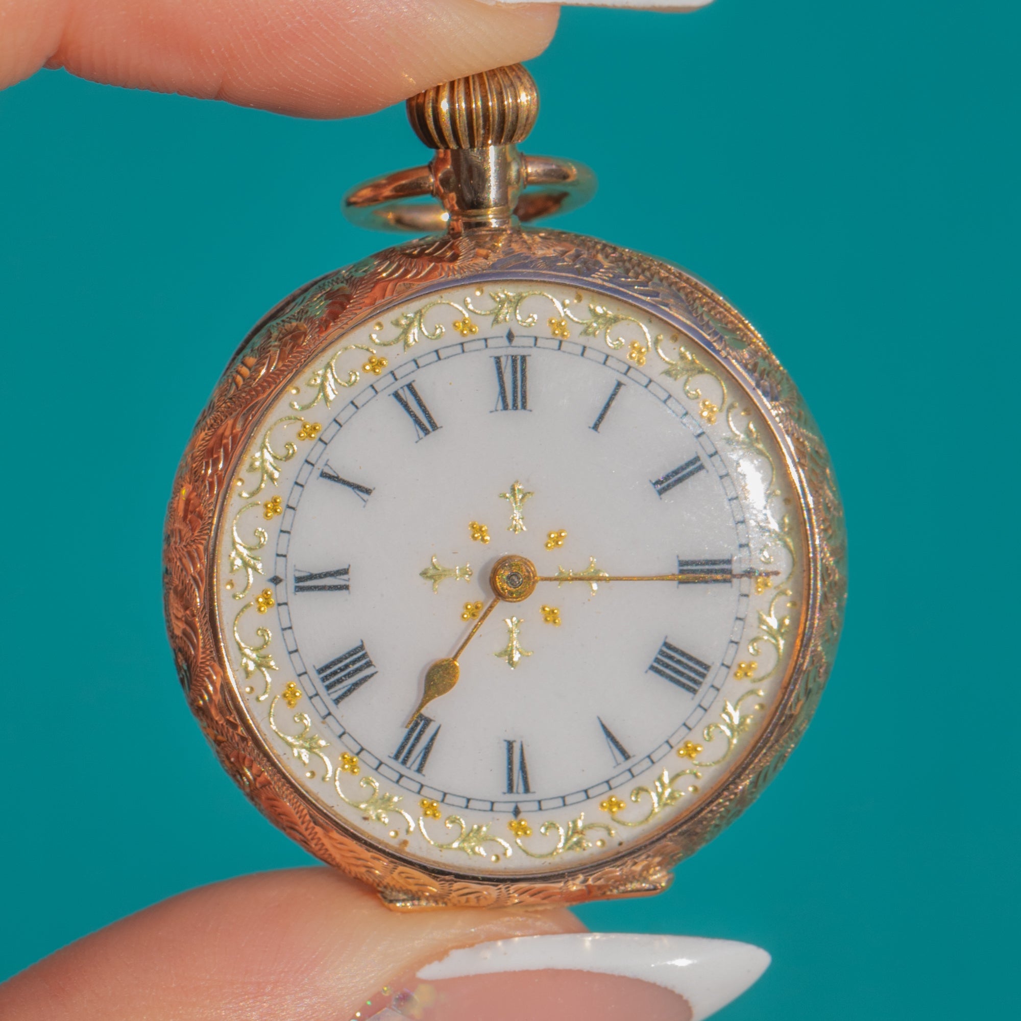 Worn on a chain as a pendant or enjoyed as part of a timepiece collection, it’s a wonderfully decorative object that embodies the elegance of the 1910s.