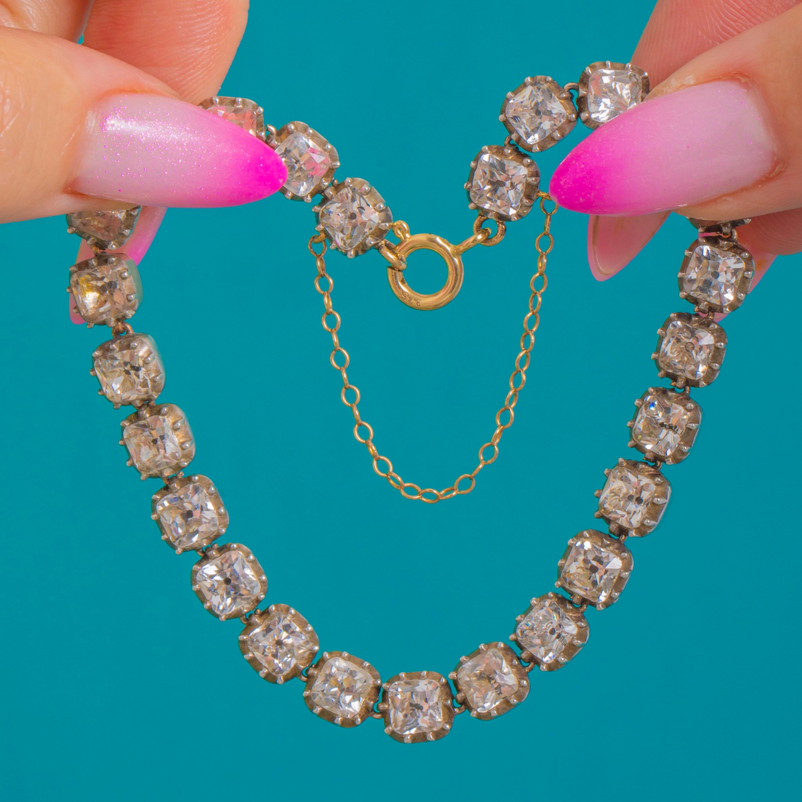 Finished with a 9ct Gold bolt ring for secure, period-appropriate closure, this elegant line bracelet delivers timeless sparkle and poise. Beautifully proportioned and wonderfully wearable, it’s a superb example of Georgian craftsmanship with a classic, minimalist silhouette.