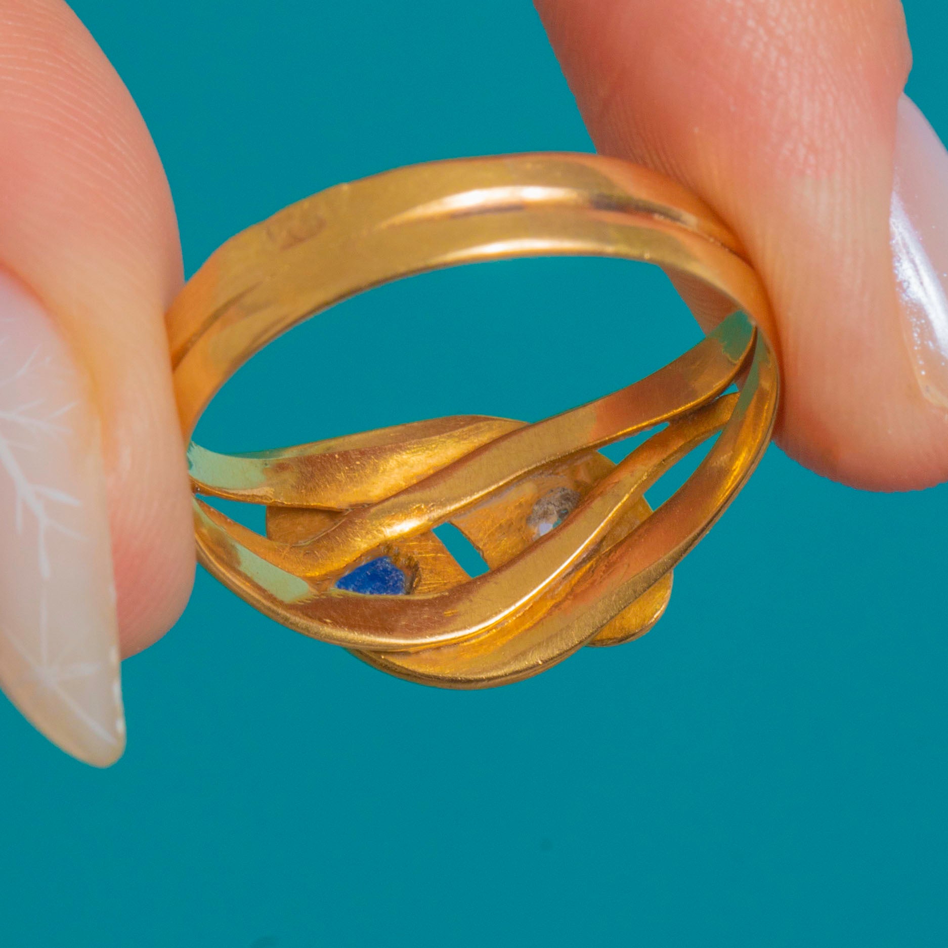 Victorian 18ct Gold Sapphire & Diamond Double Snake Ring