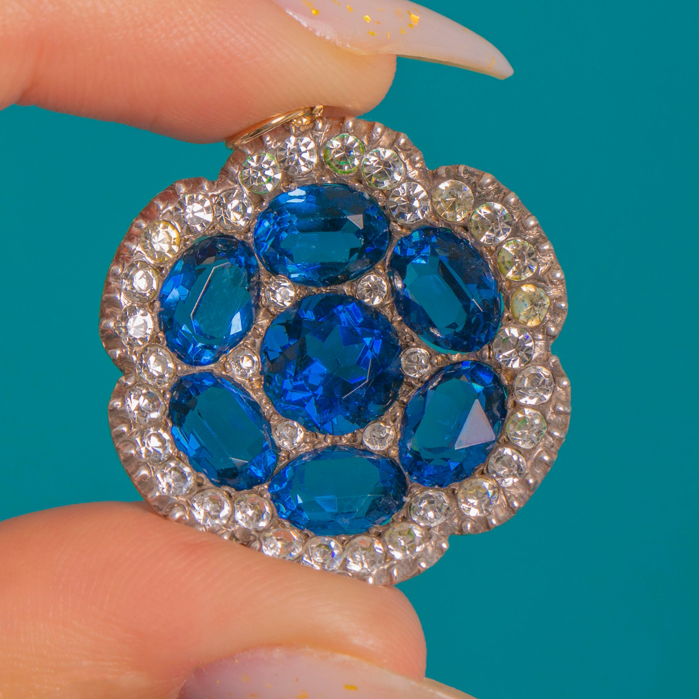 Victorian Silver & 9ct Gold Blue and White Paste Flower Pendant