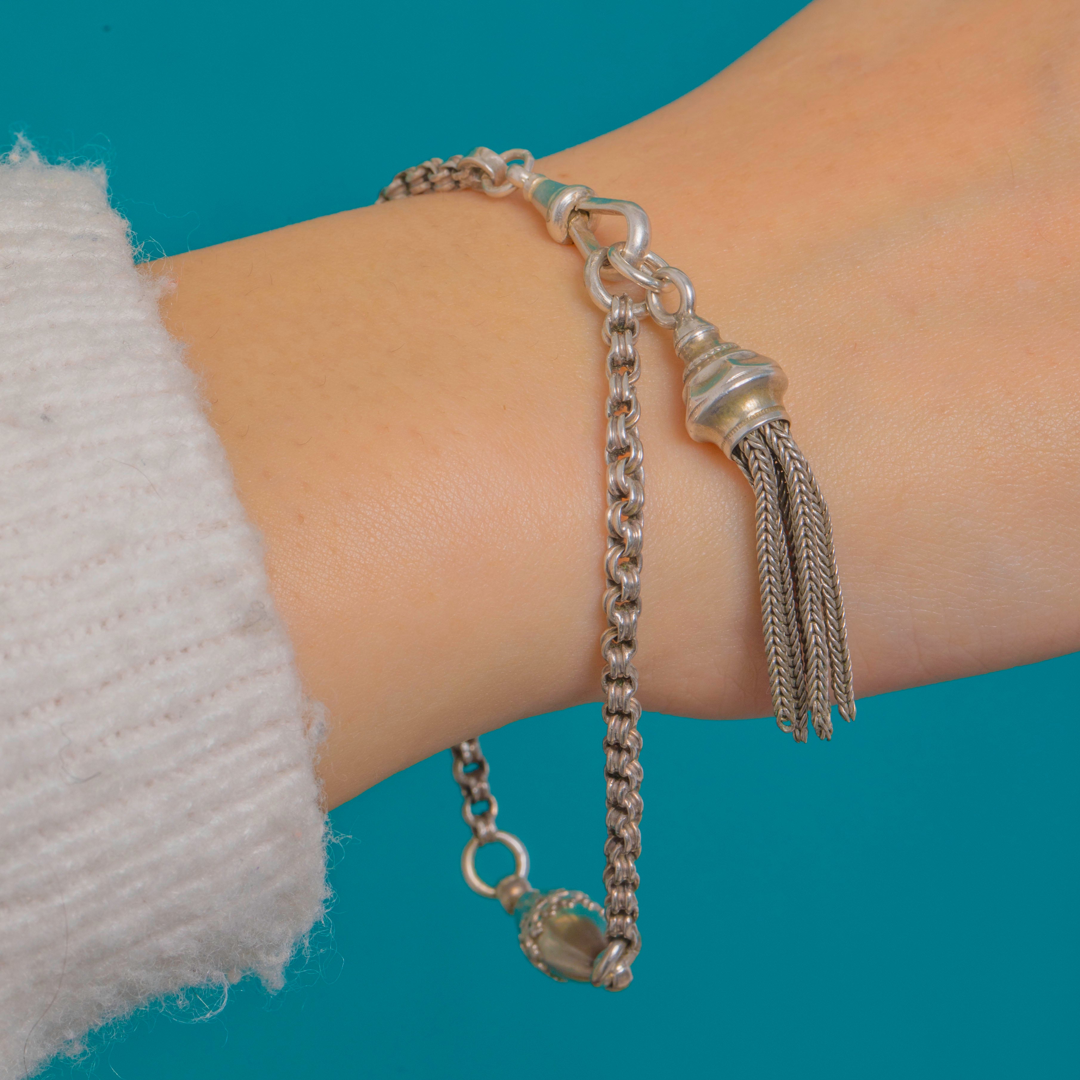 Victorian Sterling Silver Albertina Bracelet, Removable Tassel Charm