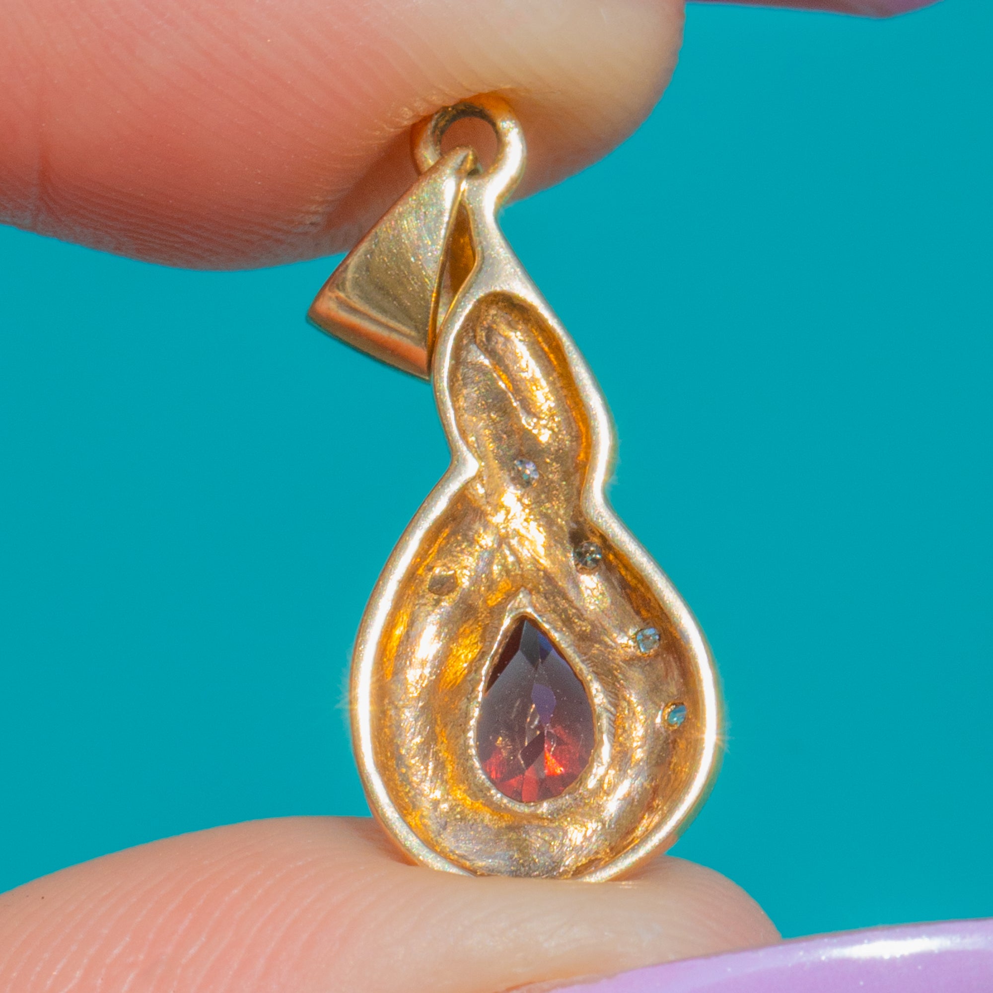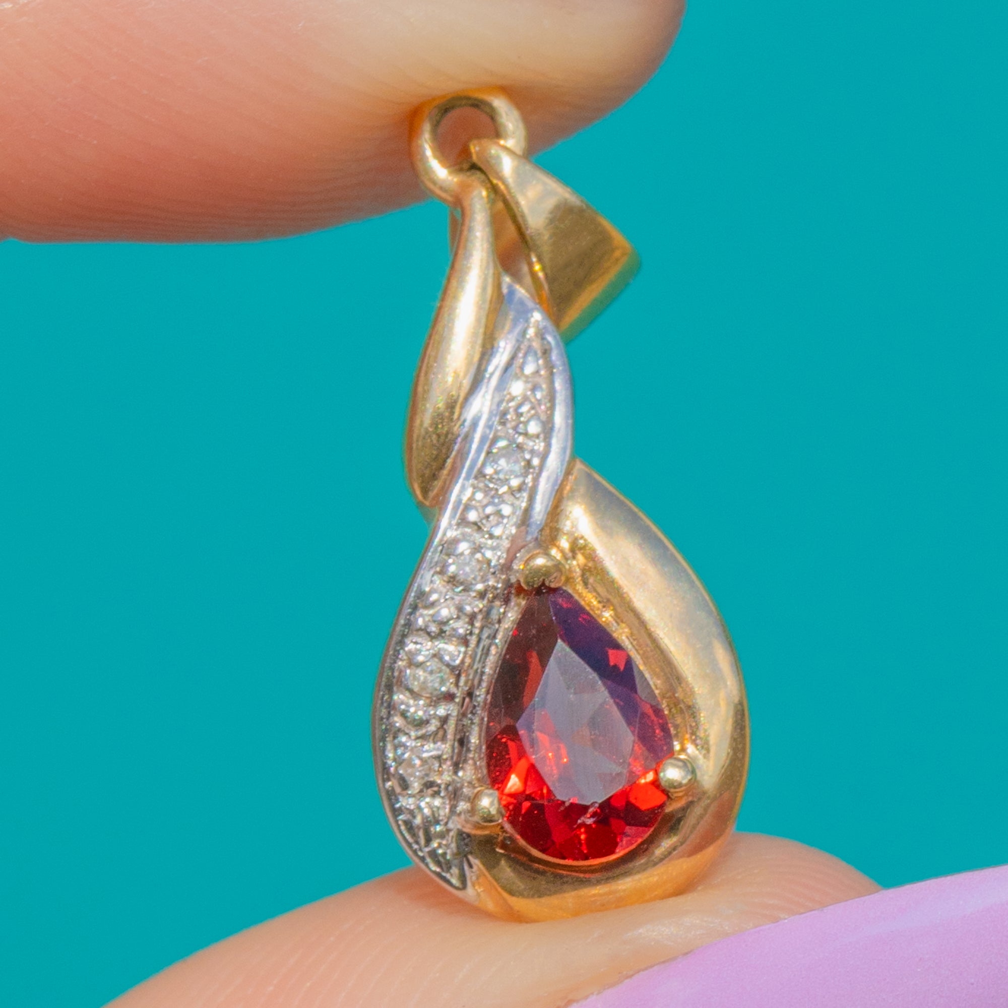 Vintage 9ct Gold Garnet Pear Diamond Drop Charm