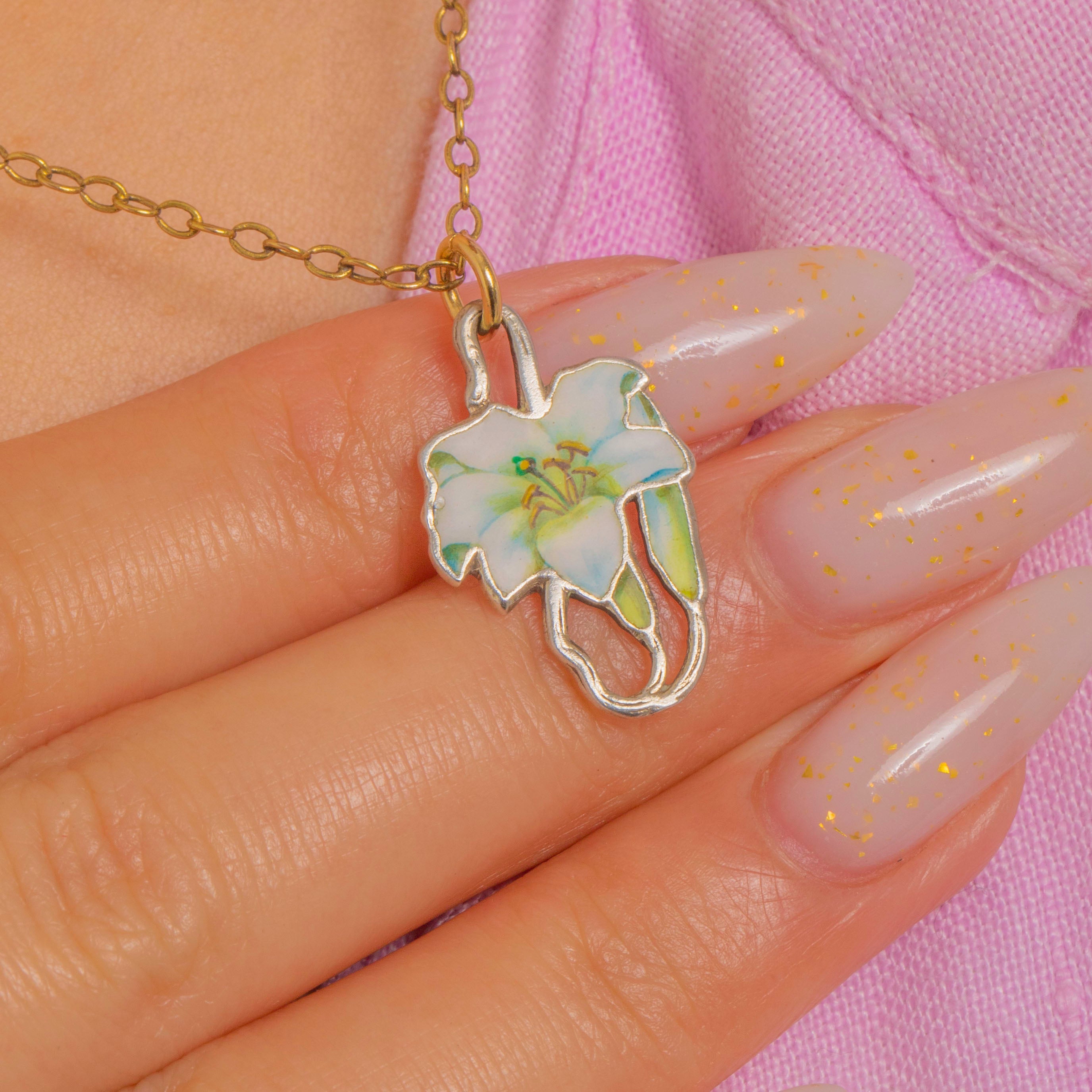 Delicate in scale yet rich in detail, it’s finished with a contrasting 9ct Gold jump ring so it’s ready to adorn your favourite chain or charm bracelet. A sweet, wearable bloom to bring a touch of poetry to every day.