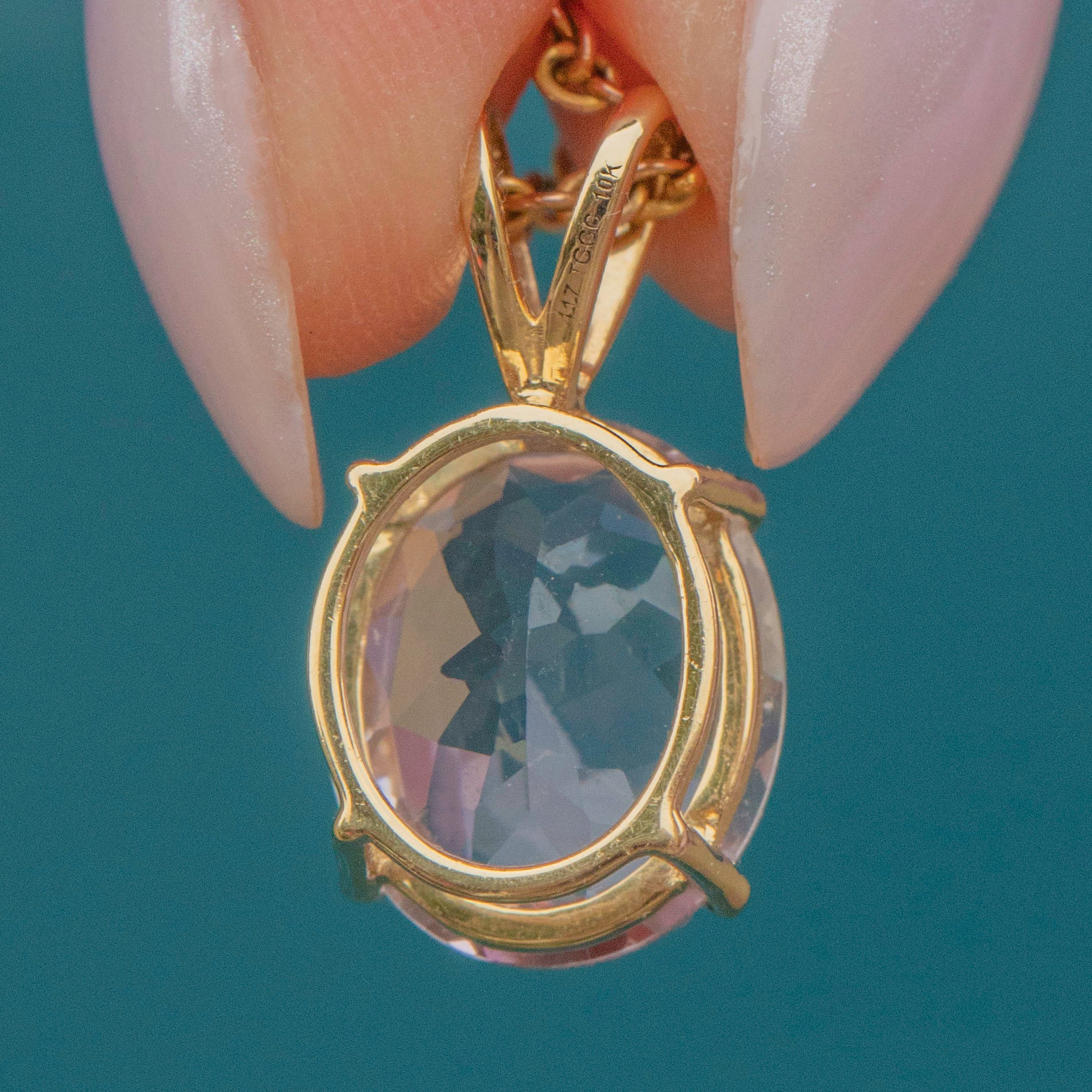 EXCELLENT. This 10ct Gold Kunzite pendant is in excellent condition. The gemstone has a lovely light lilac hue and securely set into place, free from chips or abrasions. This Gold pendant is ready to wear straight from the box!