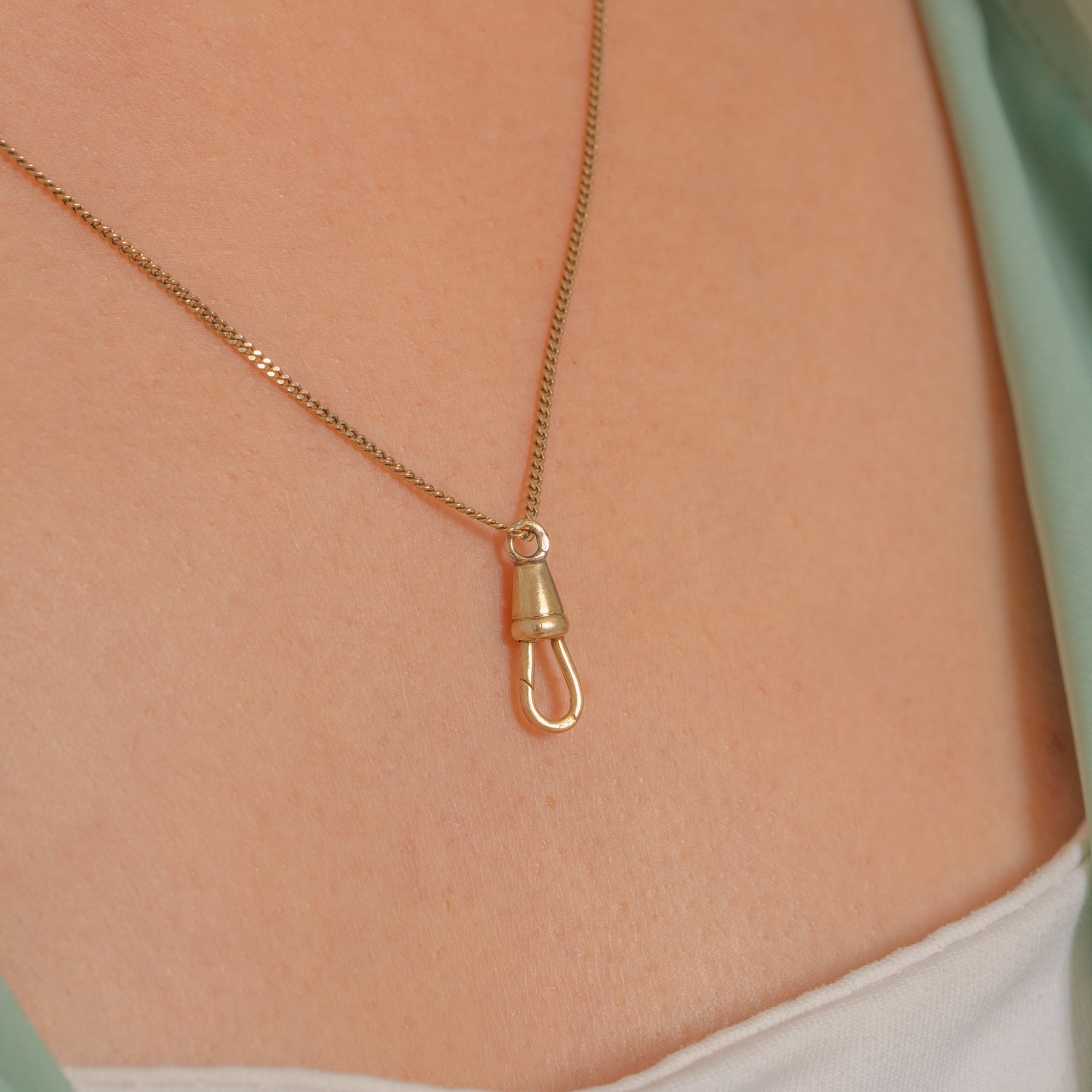 This late Art Deco 14ct Gold dog clip is a refined example of 1930s craftsmanship. Simple, elegant and beautifully engineered, it’s ideal for attaching pendants, fobs or charms to your favourite chain.