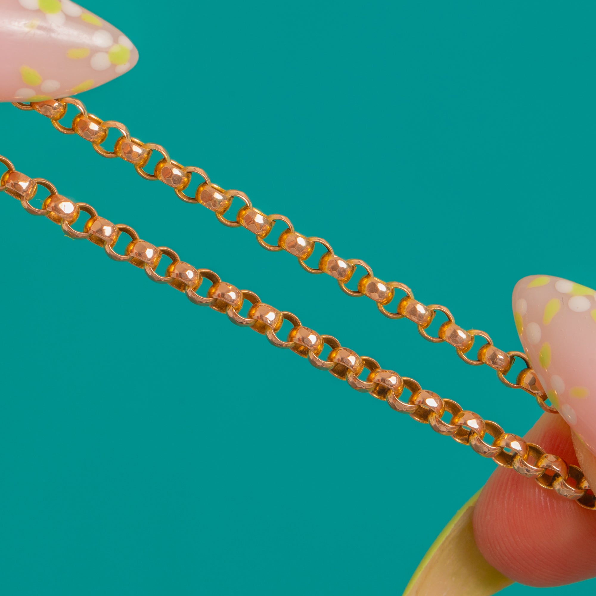 Raffiniert und wunderbar vielseitig präsentiert sich diese Victorian 9ct Goldkette mit zarten, facettierten Gliedern, die bei jeder Bewegung das Licht einfangen. Ihr eleganter, diamantierter Schliff verleiht einen dezenten Glanz, der niemals aufdringlich wirkt – ein zeitloses Schmuckstück für den Alltag oder zum stilvollen Kombinieren.
