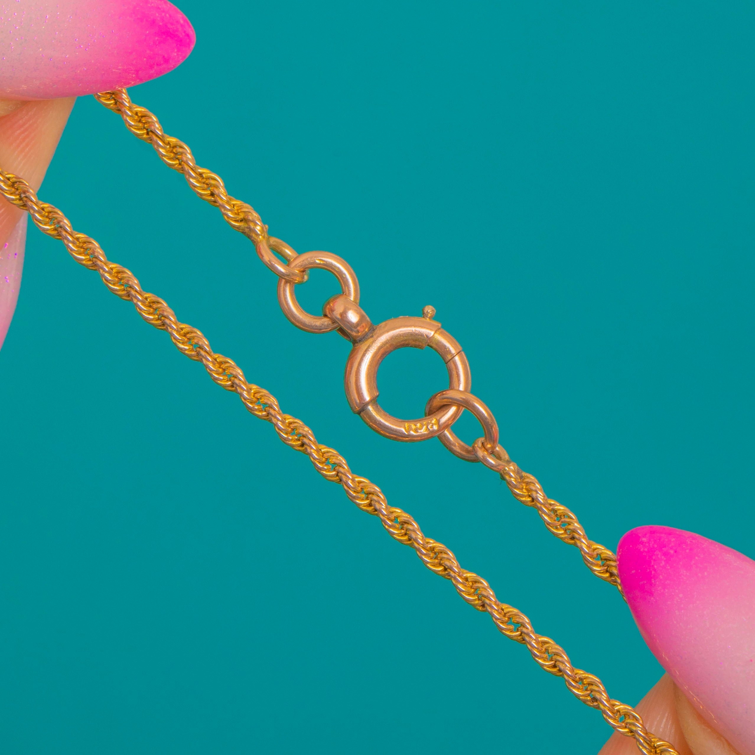 Delicate yet distinctive, this Victorian 9ct Gold rope chain is punctuated with petite ornate orb links, bringing a whisper of antique romance to a classic silhouette. The regular rope twist catches the light beautifully, while the orbs are enriched with fine granulated and foliate detailing for an elegant, tactile finish.