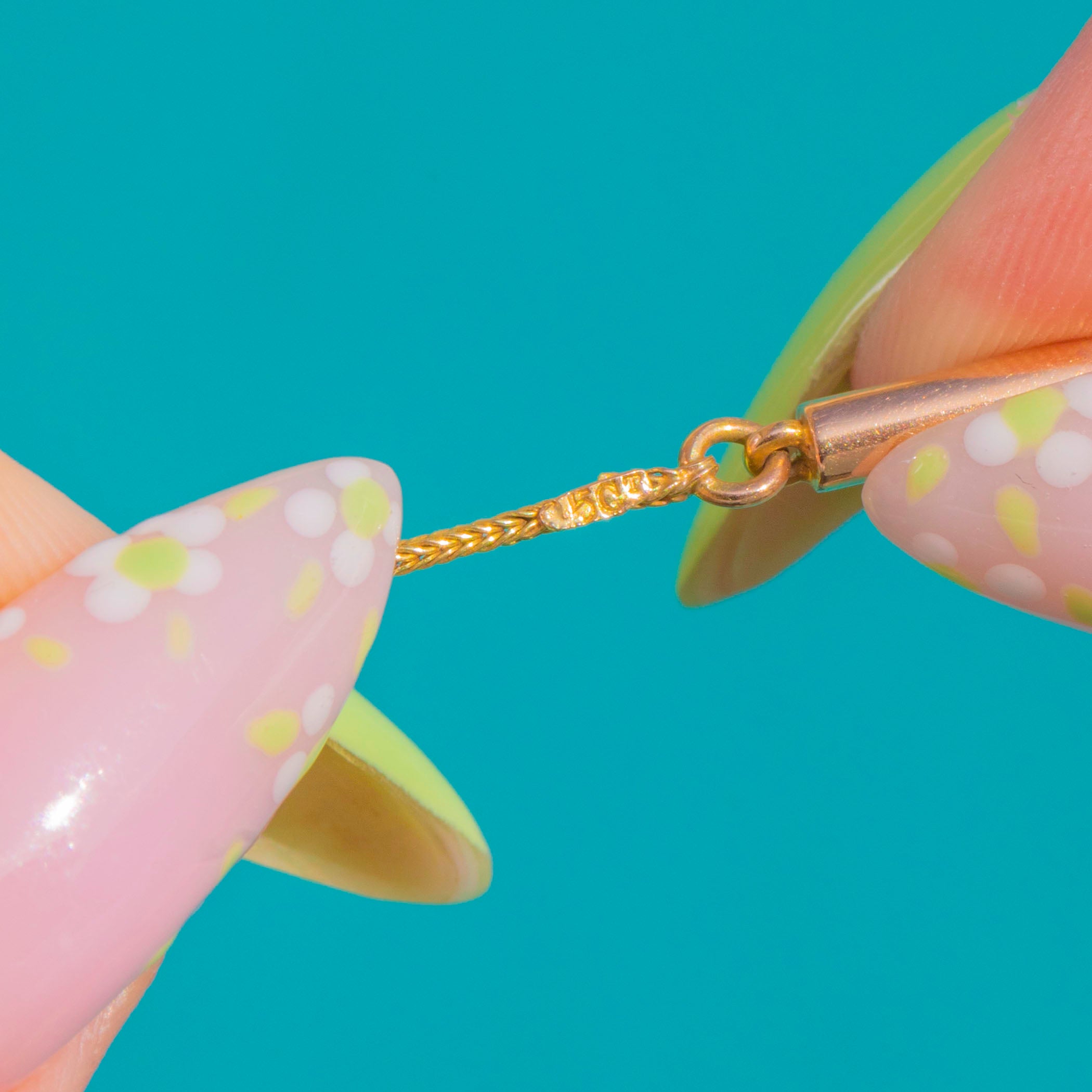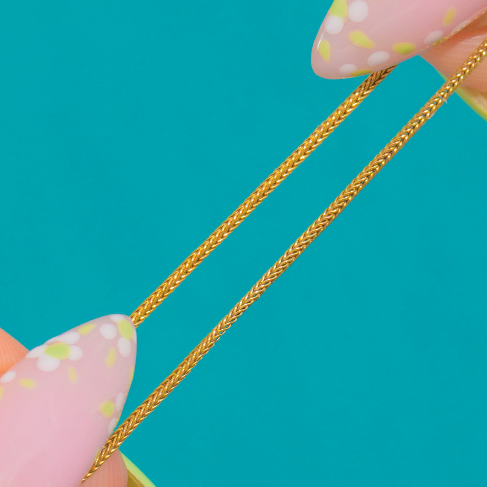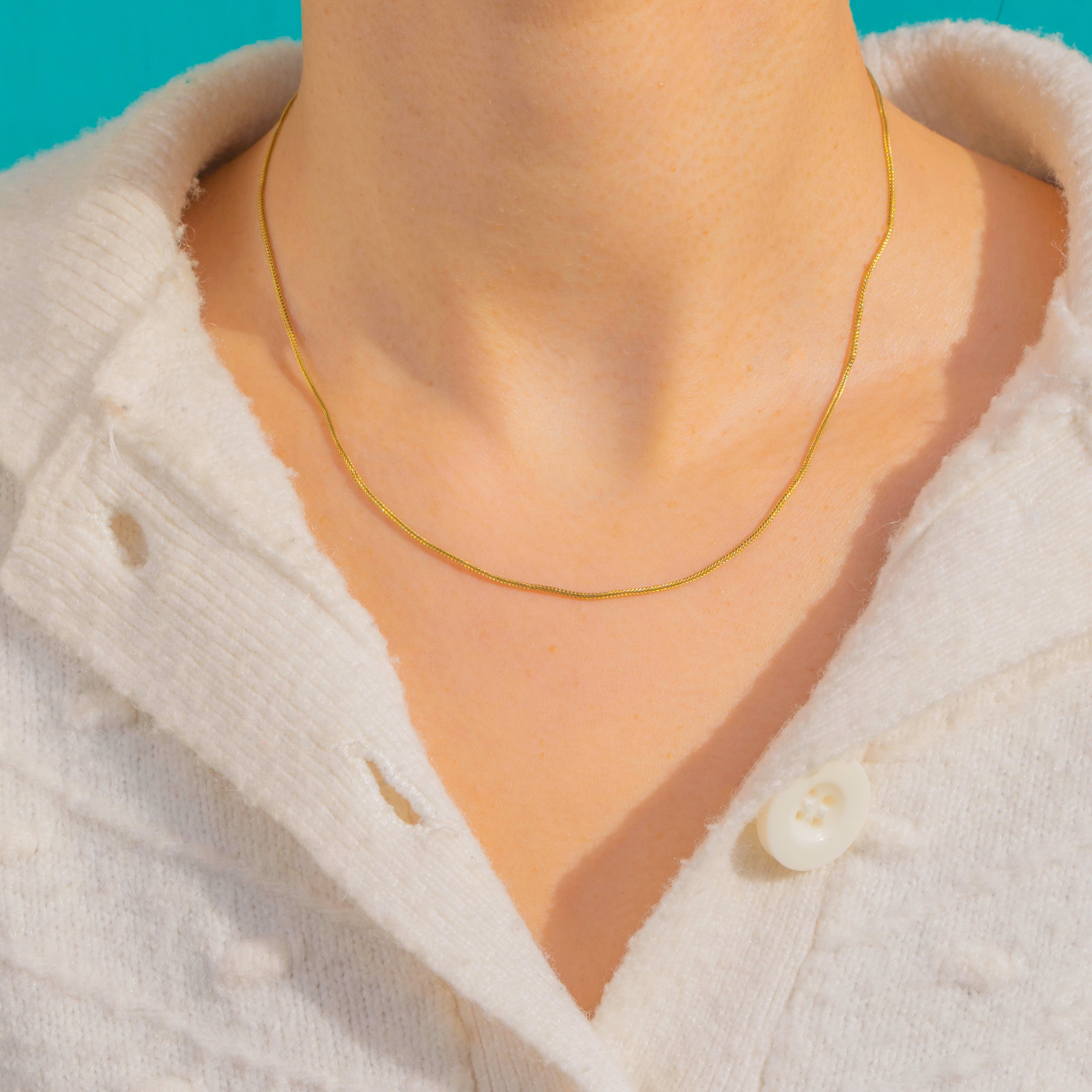 Zart und dennoch edel misst die Kette 38 cm (15 Zoll) in der Länge und wird mit einem klassischen Bajonettverschluss geschlossen. Ihr schlankes Profil macht sie perfekt, um sie als dezentes antikes Highlight solo zu tragen oder mit einem Lieblingsanhänger für einen mühelos zeitlosen Look zu kombinieren.