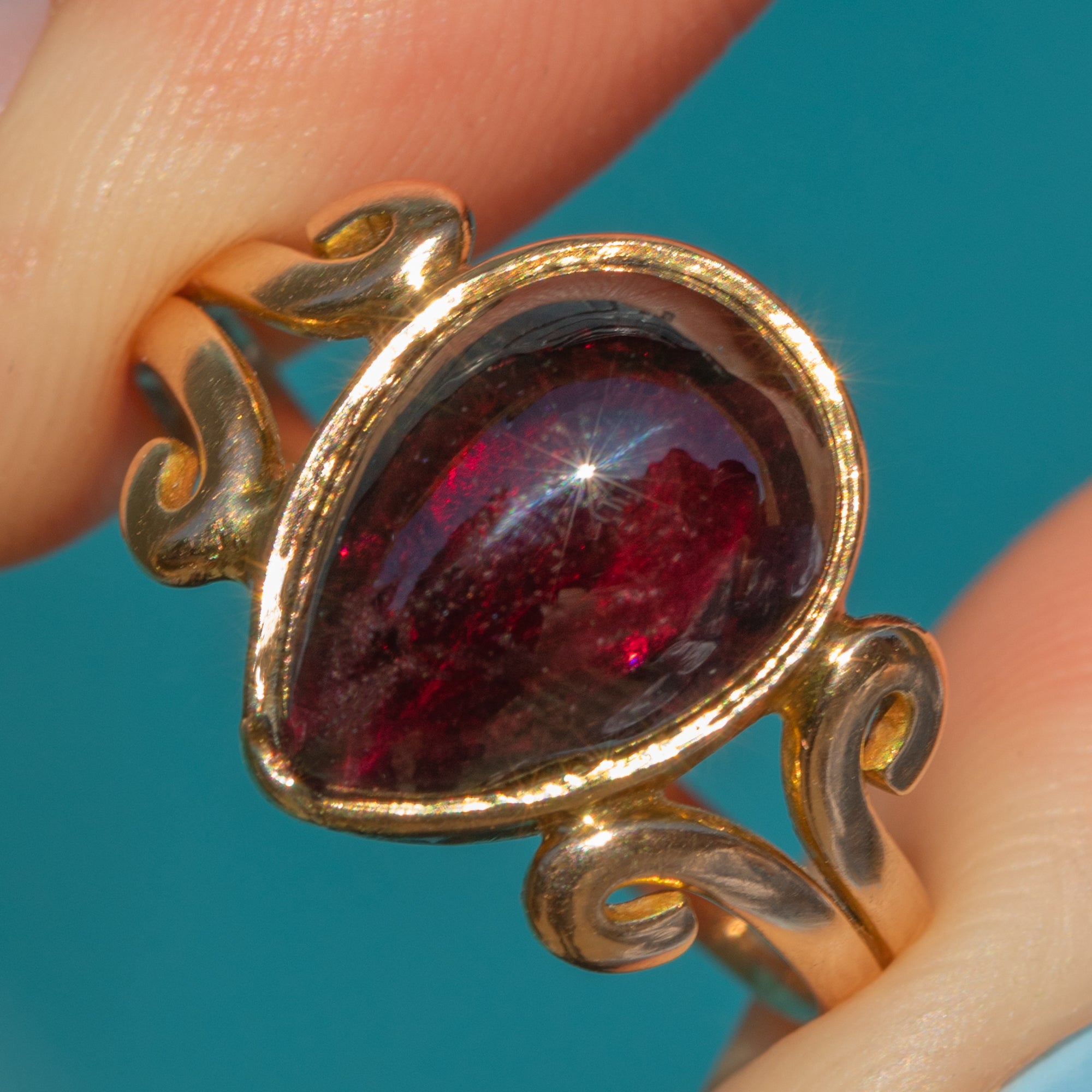 15ct Gold Garnet Pear Cabochon Ring 1.95ct