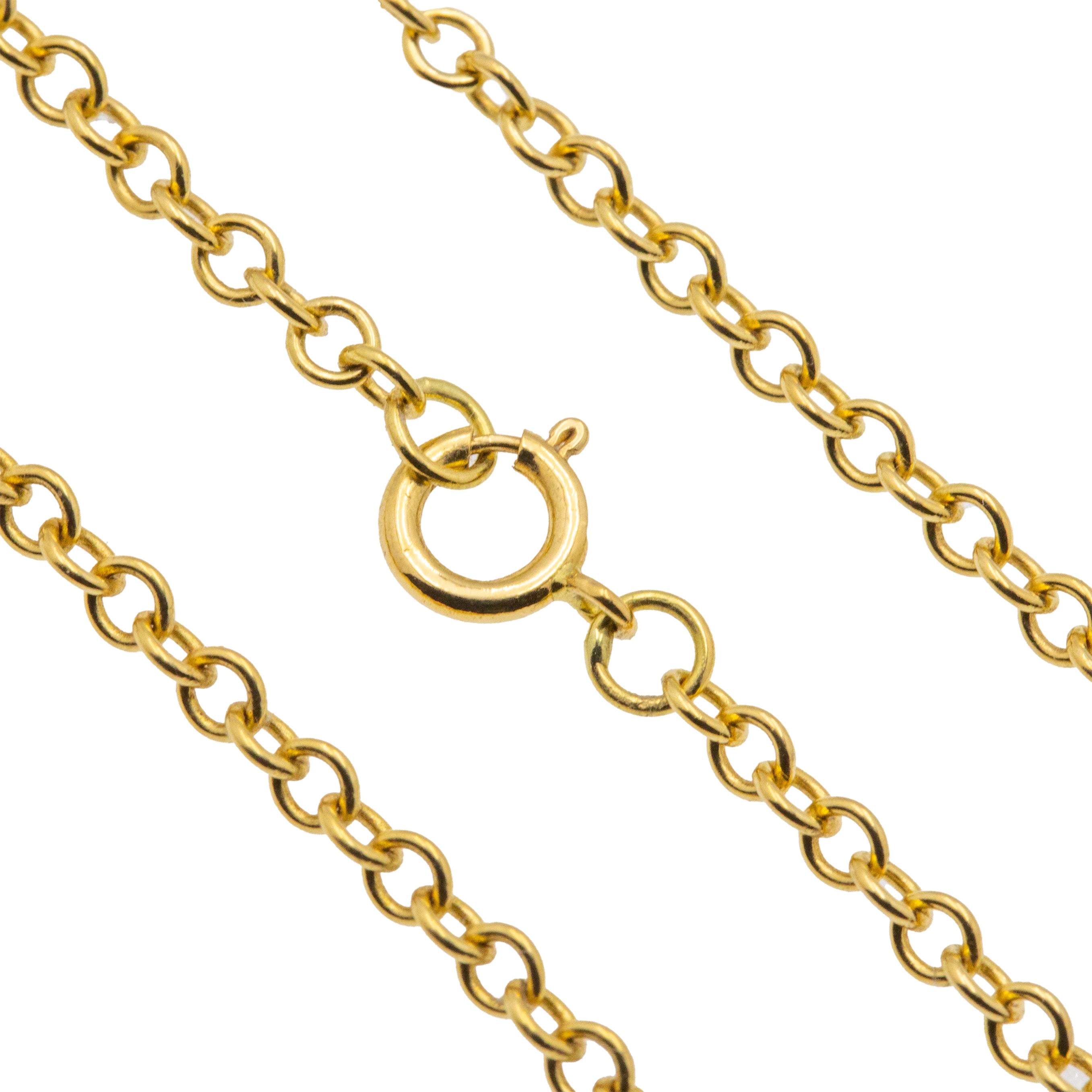 AUSGEZEICHNET. Diese 16,5" antike 18 Karat Gold-Anhänger-Kette wird in ausgezeichnetem Zustand angeboten. Jedes Glied ist gut verbunden und strahlt einen buttrigen Schimmer aus. Der Federring ist voll funktionsfähig, sodass Sie sie mit Zuversicht tragen können. Eine perfekte Ergänzung für jede Schmucksammlung!