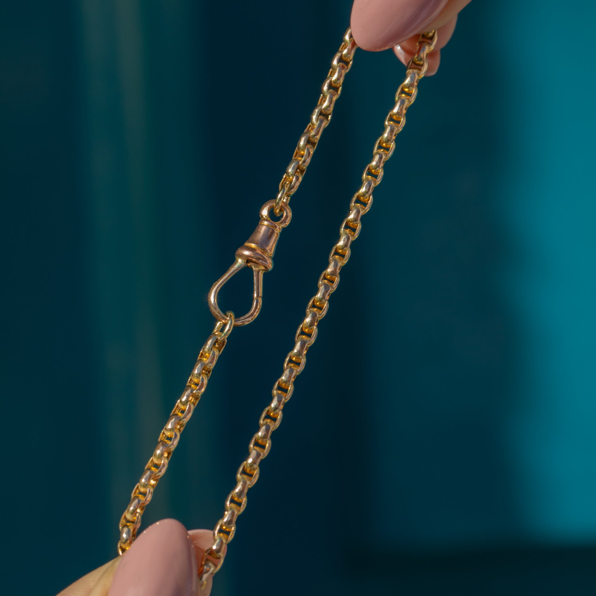 Measuring 16" in length, this Victorian Gold chain has so much wear potential. Layer this piece with your other Gold chains, or attach some charms to the antique dog clip!