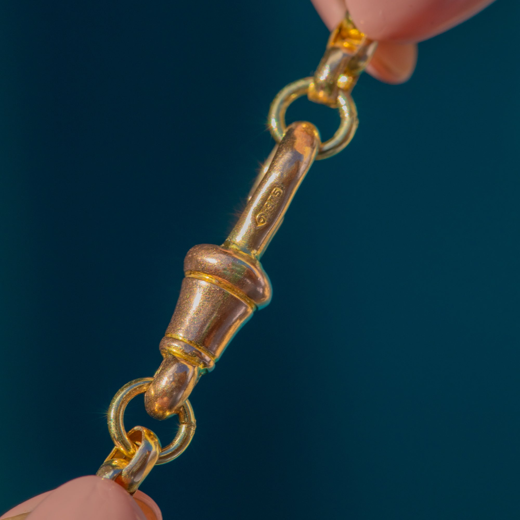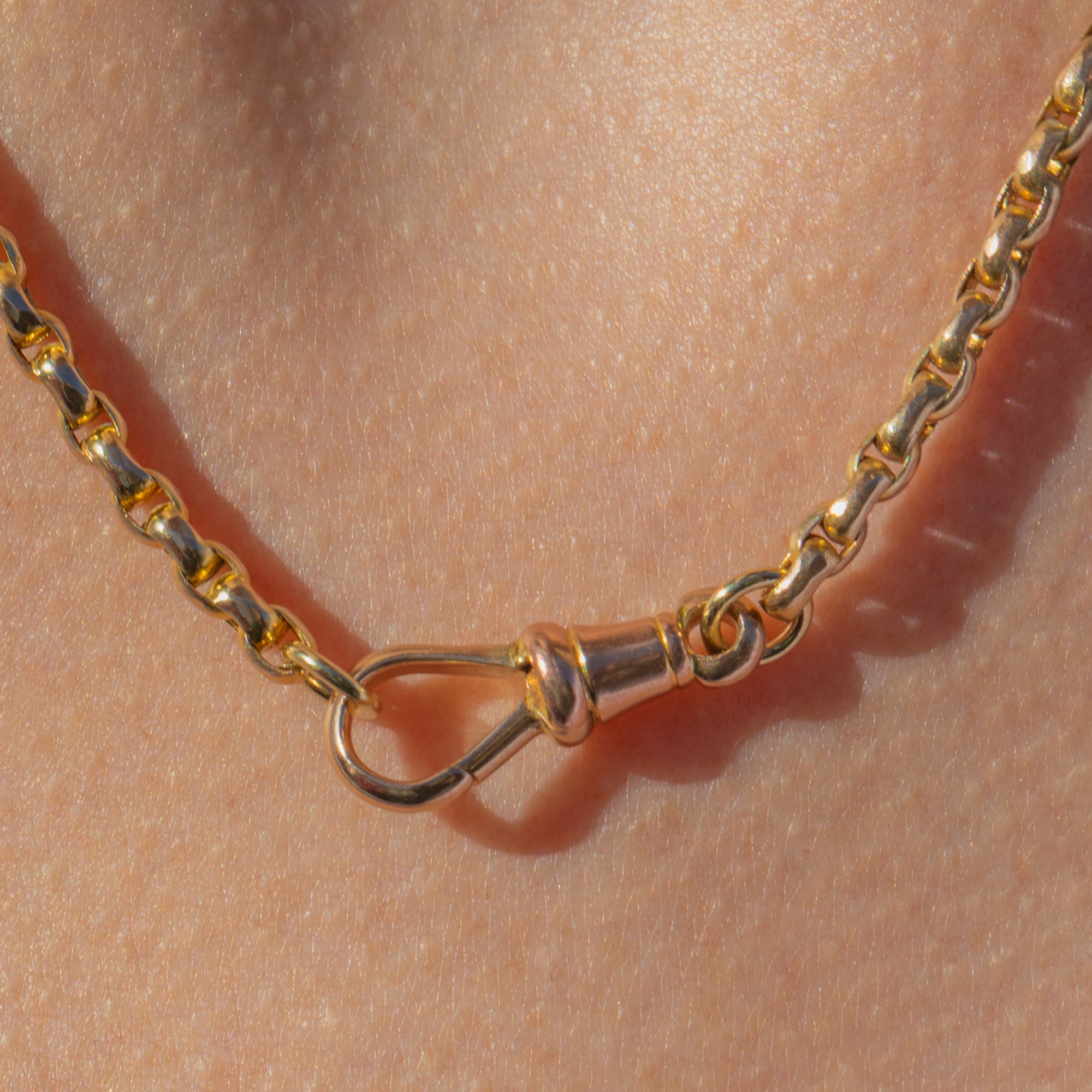 16" 9ct Gold Belcher Chain with Antique Dog-Clip Charm-Holder
