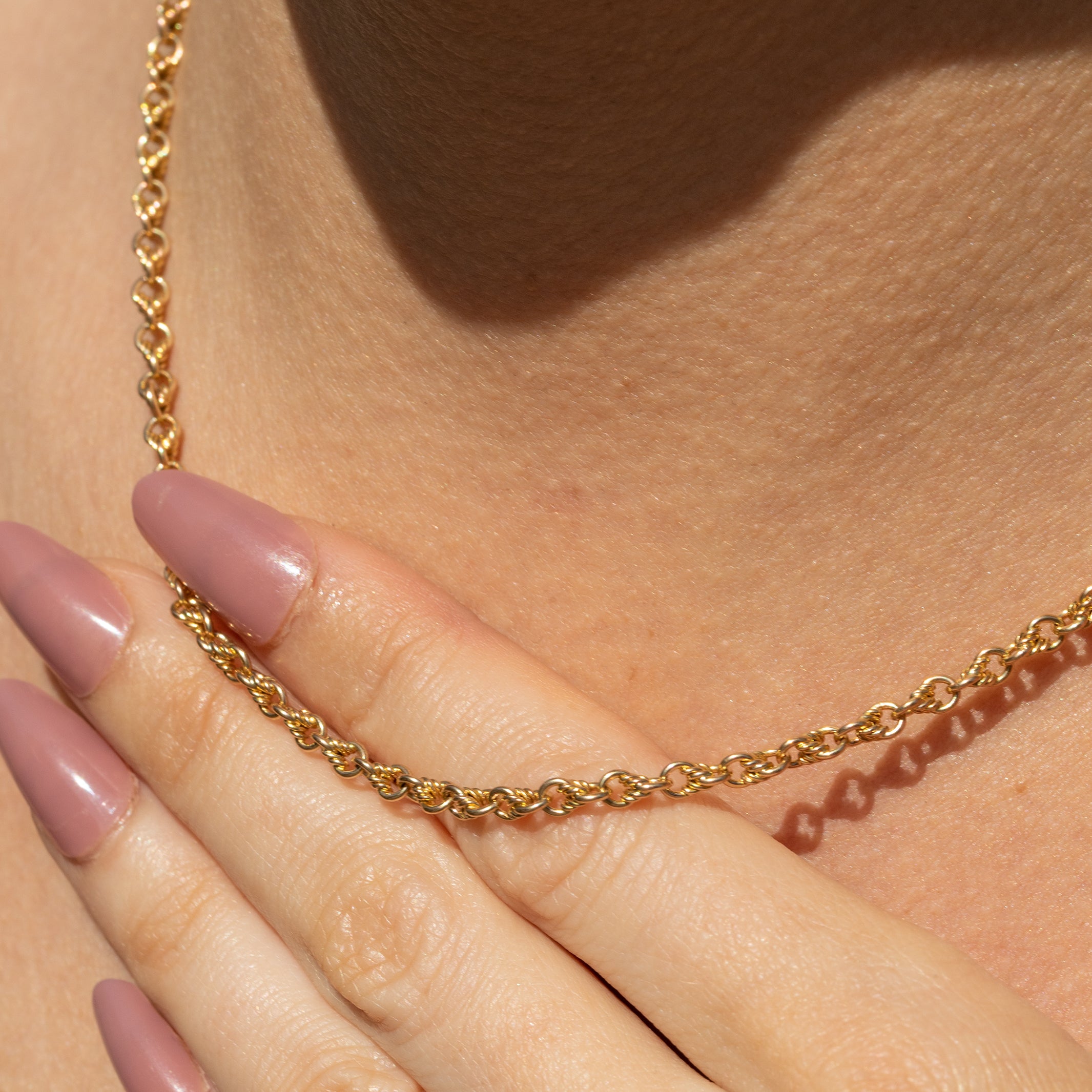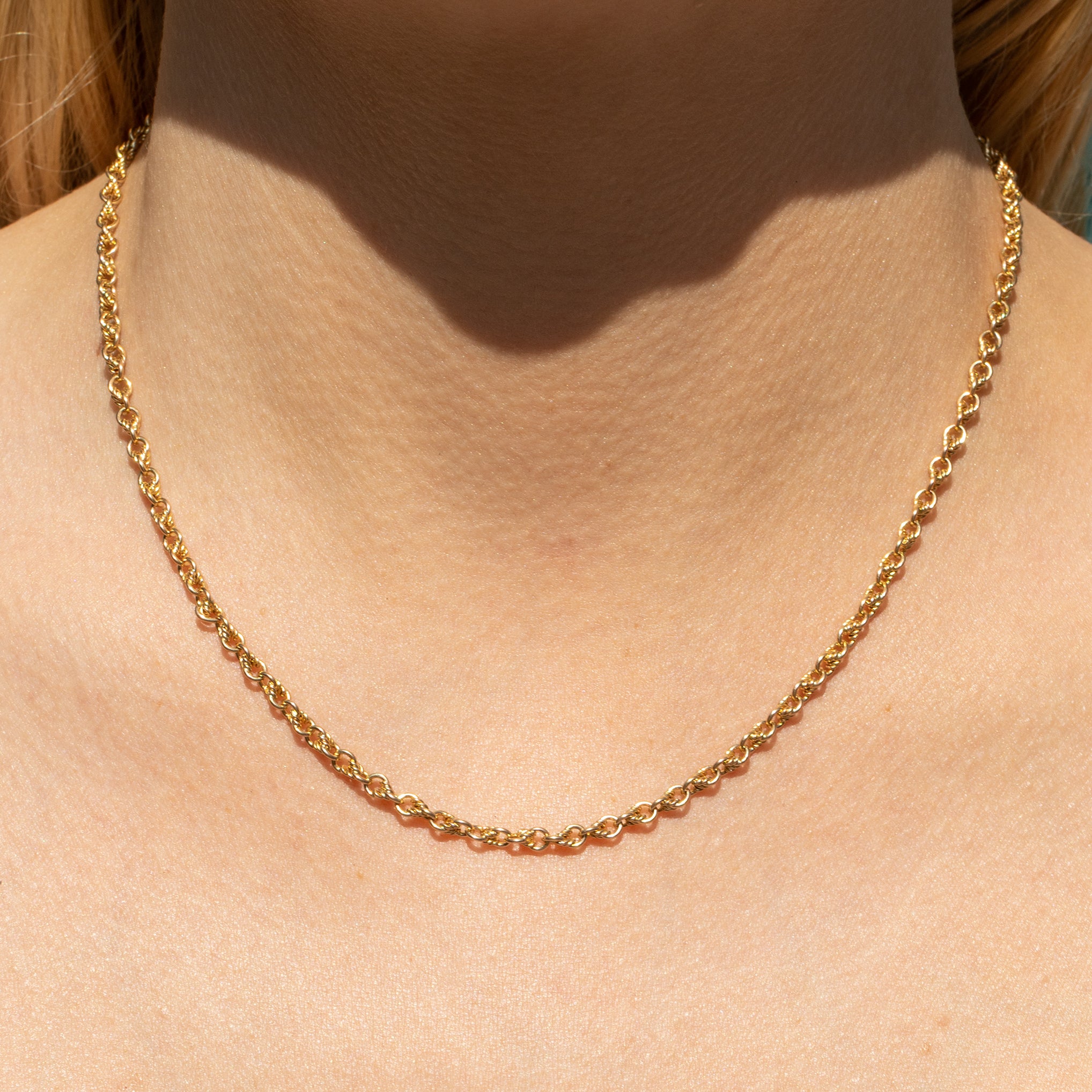 Embrace the romantic charm of this 16" antique 15ct Gold lover's knot chain as she adorns your neck! Her 16 inch length is made up of finely entwined 15ct Gold wire to form each dainty lover's knot.
