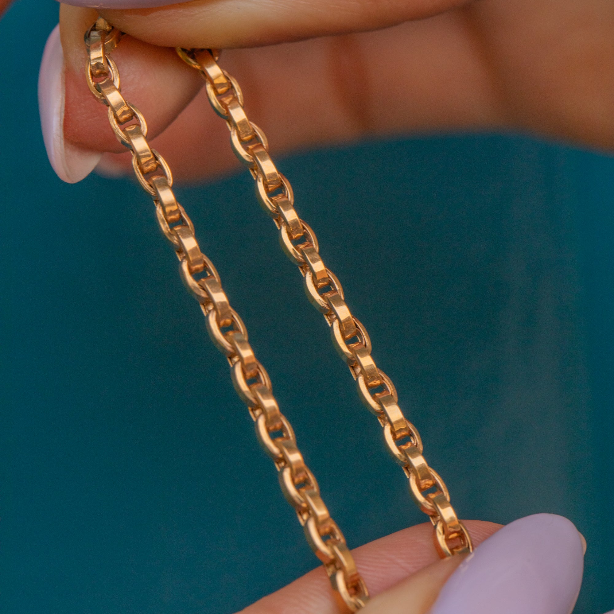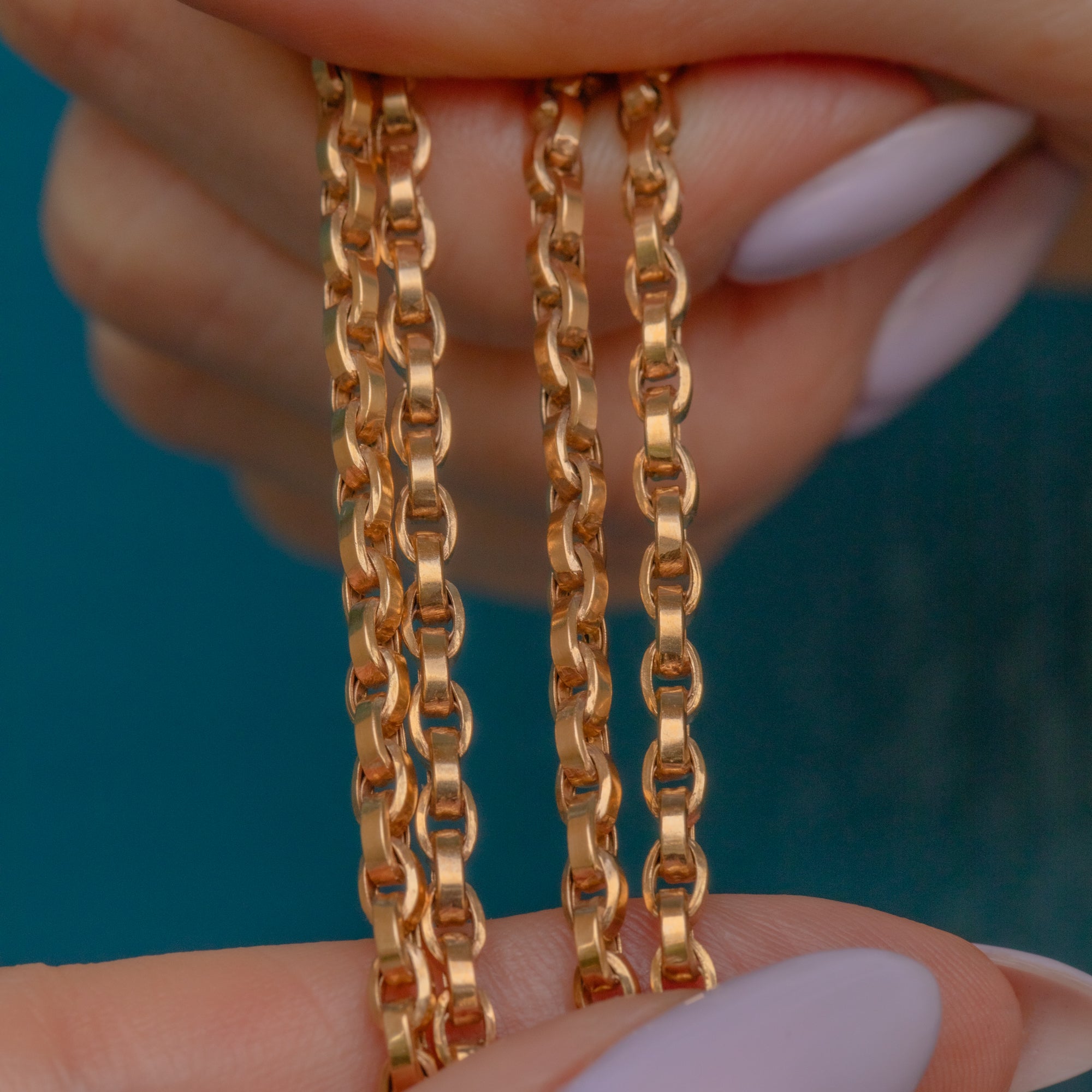 Let this 16" antique 9ct Gold belcher chain radiate warmth as she adorns your neck! Formed of saturated 9ct Gold belcher links with a square edge finish, the light bounces off every inch of this Victorian Gold necklace.