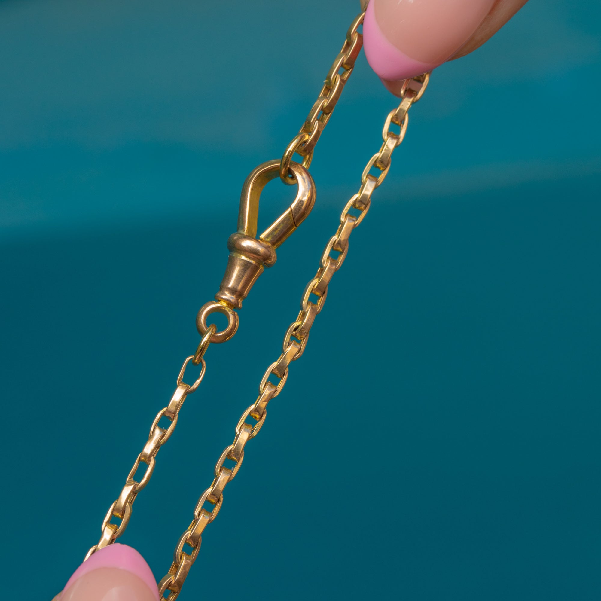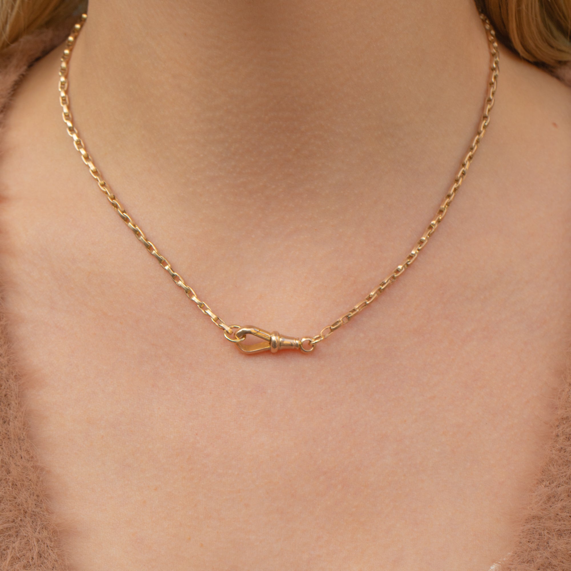 With an true antique dog-clip to fasten, why not make her the statement feature and wear her to the front to expose her Victorian beauty in full. With the ability to style up or wear day to day, this antique Gold chain is a must!