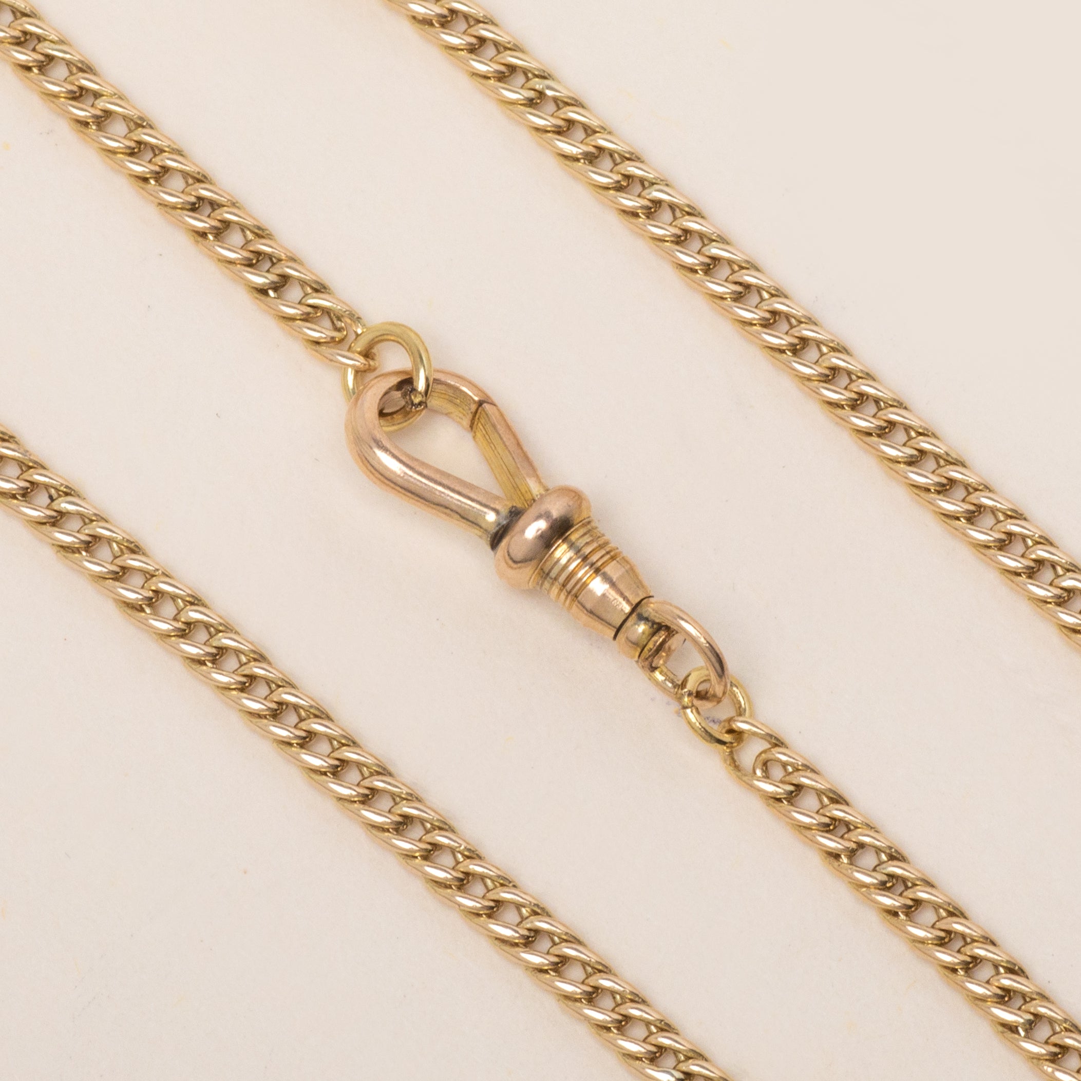 EXCELLENT. We are pleased to present this antique 9ct Gold curb chain in excellent condition! The Gold has an even saturated throughout and each link is securely connected. The dog-clip is in genuine antique and is in perfect working condition allowing you to wear this luxurious piece o Victorian jewellery confidently whatever the occasion!