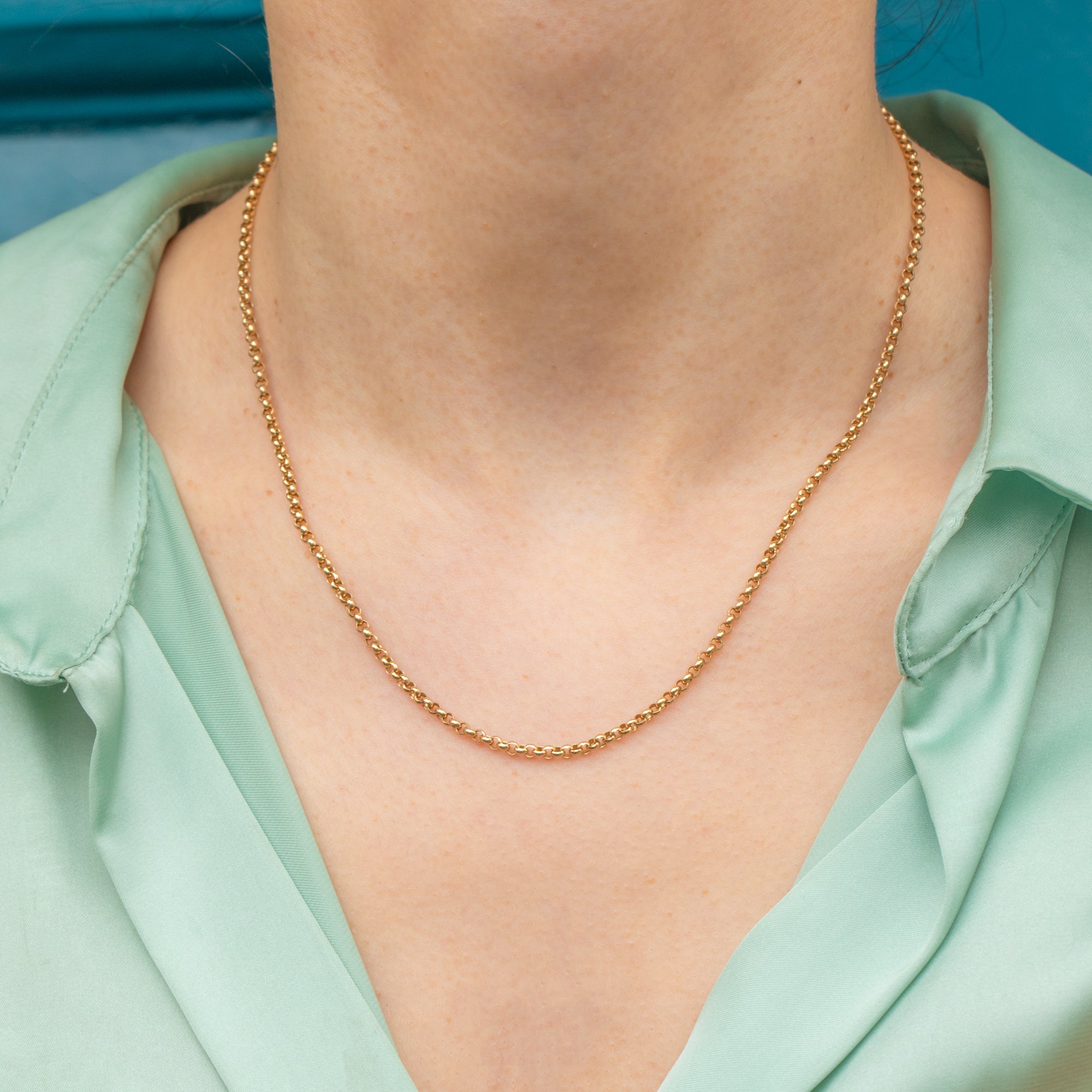 EXCELLENT: This antique 9ct Gold skinny belcher chain is in excellent condition. The links are securely connected with no signs of wear, and the later added bolt ring is in perfect working condition so you can wear this Victorian chain with confidence!