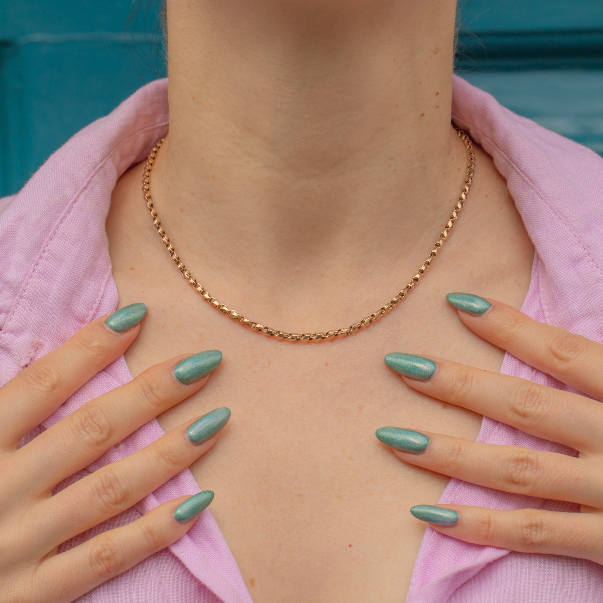 This 16" antique 9ct Gold tulip chain will completely steal your affections! Crafted from rosy 9ct Gold, this chain will add a sultry flash of Gold to your favourite outfit.