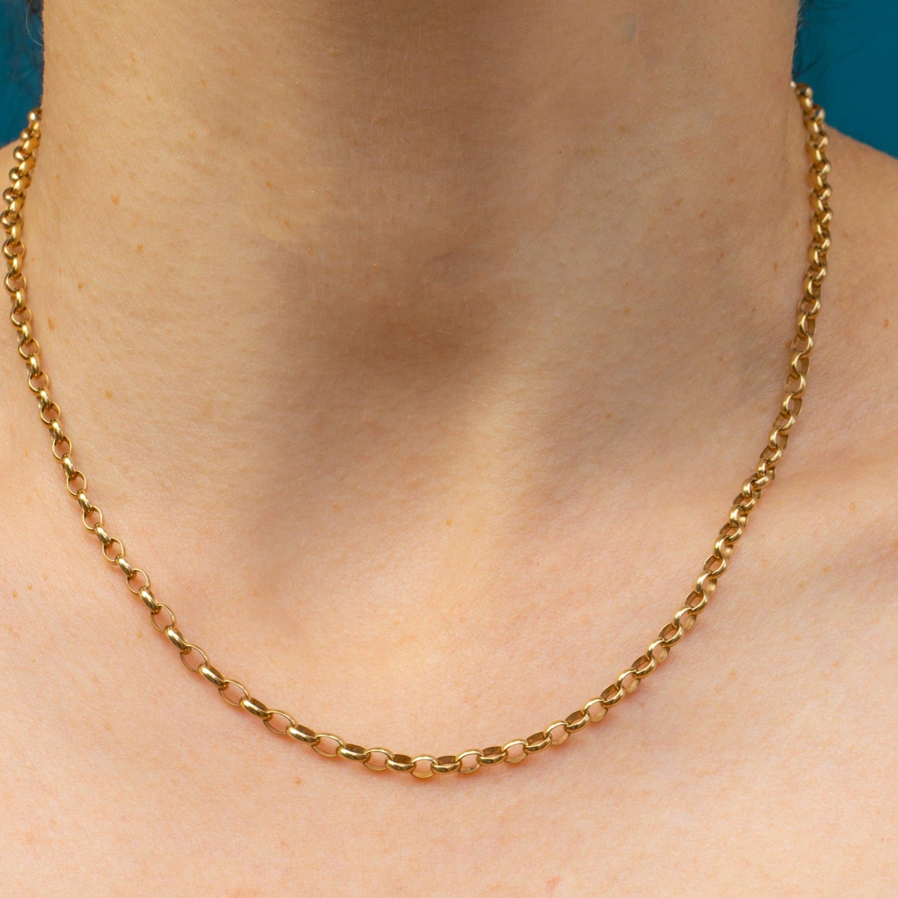 The smooth belcher links of this Victorian necklace elegantly drape across your collarbones, fastened with a bolt-ring to finish. You'll never want to take this antique Gold chain off once she's in your possession!