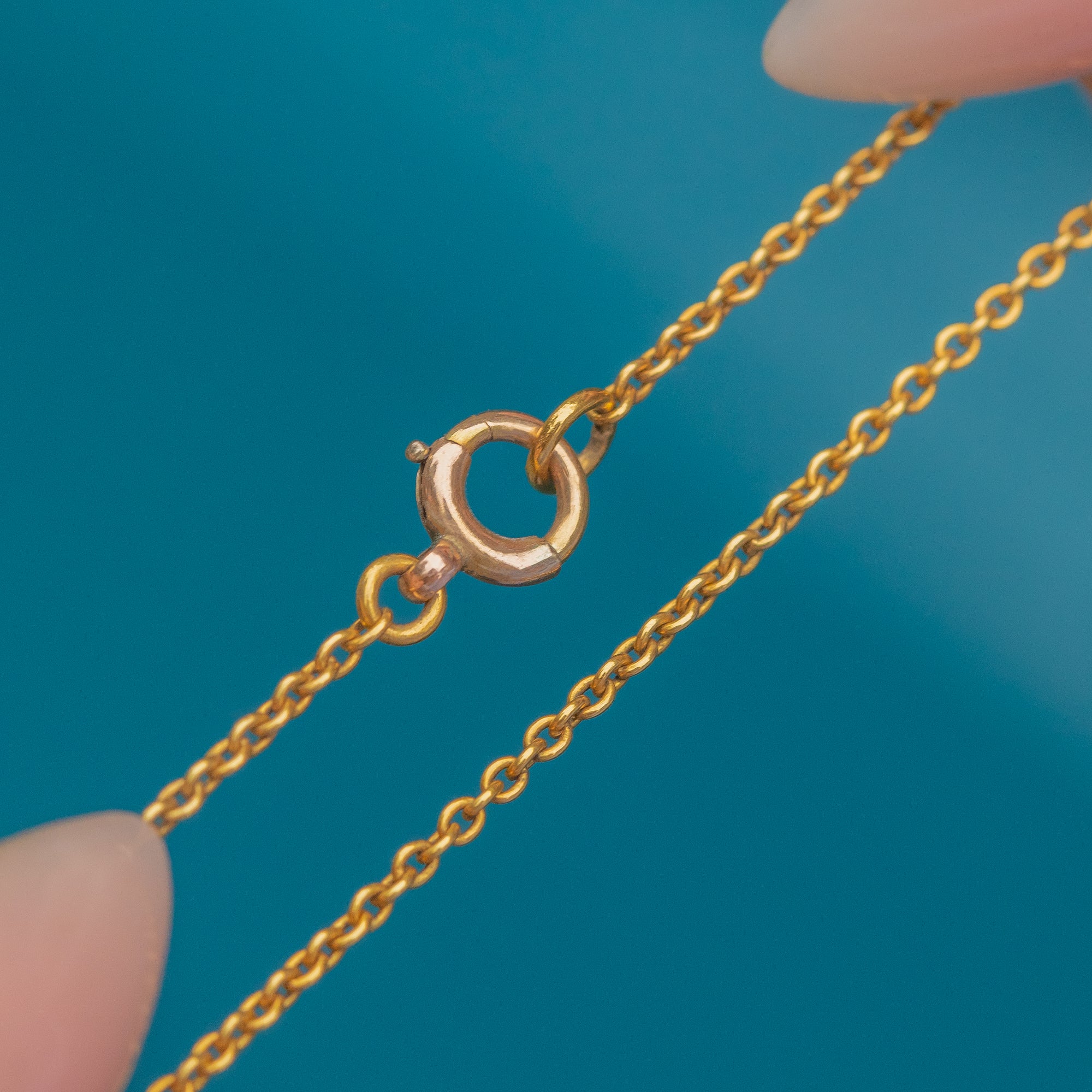 This fine Victorian chain is crafted in rich 18ct Gold, offering a subtle yet luxurious finish. At 17" in length, it is a beautiful everyday piece that sits elegantly at the collarbone.