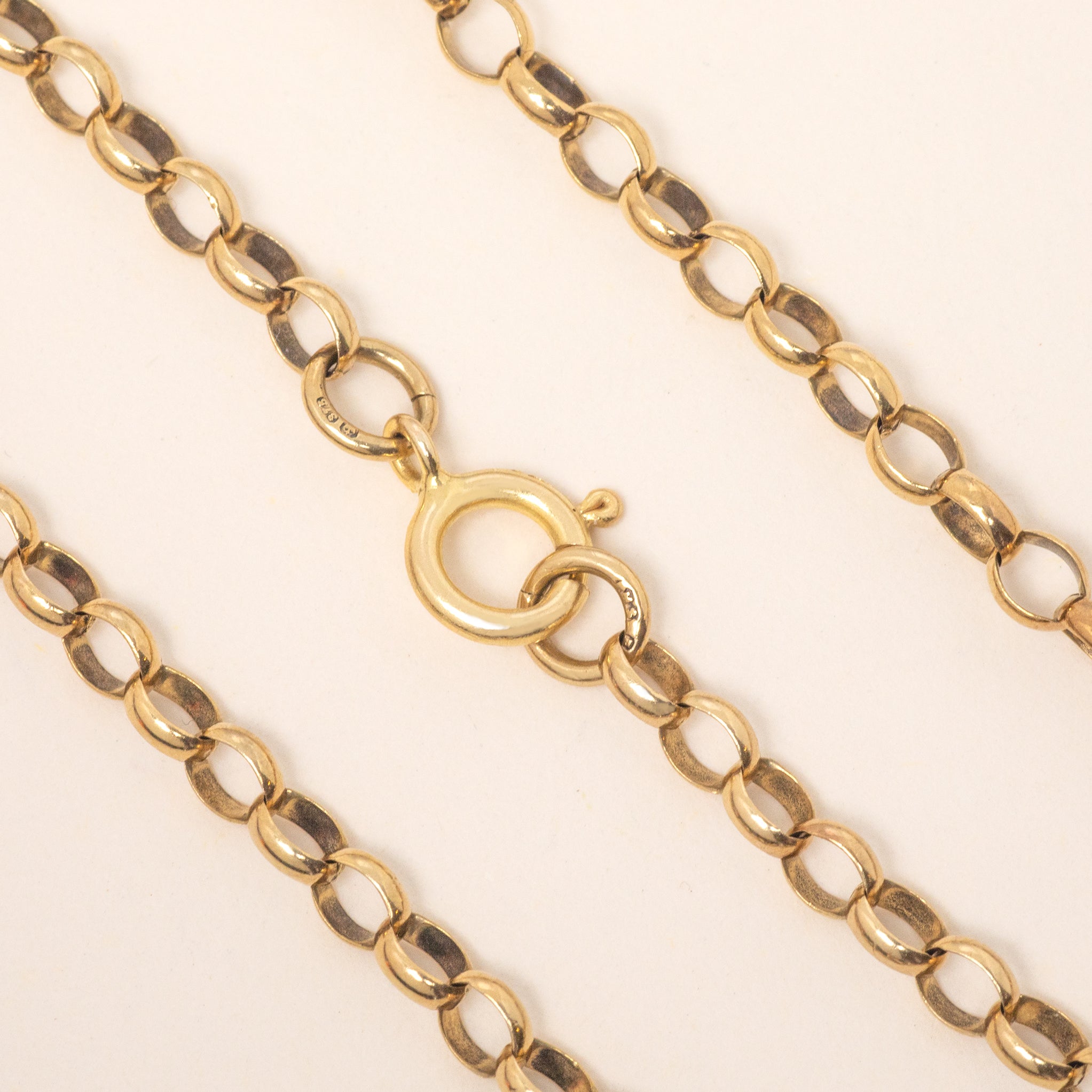 EXCELLENT. With a secure set of links and a fully functioning dog clip, this 17.5" 9ct Gold belcher chain is in excellent condition! The bolt ring allows you to wear this piece confidently and the links are all securely attached together.